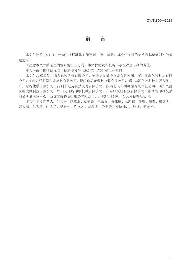 增和包装股份有限公司、安徽集友纸业包装有限公司、浙江亚欣包装材料有限公司、江苏大亚新型包装材料有限公司、厦门鑫新光塑料包装有限公司、浙江海潮包装科技有限公司、广州慧谷化学有限公司、深圳市冠为科技股份有限公司、陕西北人印刷机械有限责任公司、西安久鑫长物联网科技有限公司、中山优莱特印刷机械有限公司、广东皓辰旺科技有限公司、浙江省印刷装潢制品质量检验中心、西安宁康特数据服务有限公司、北京印刷学院、金久科技有限公司
