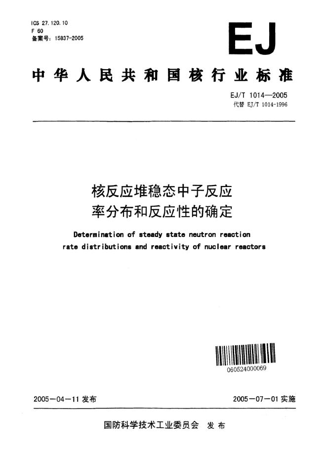 EJ/T 1014-1996 核反应堆的中子反应率分布和反应性的确定