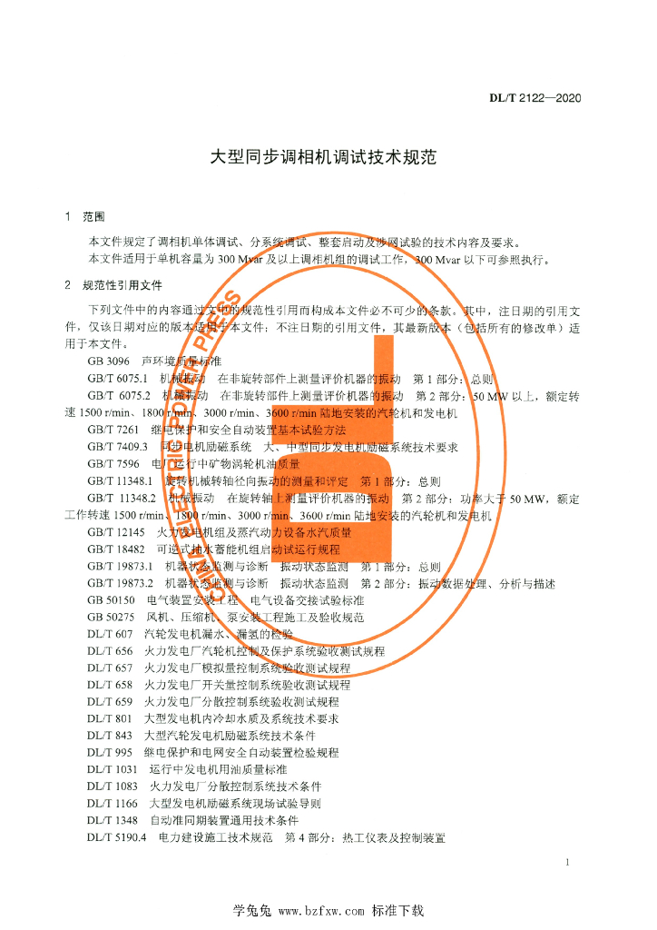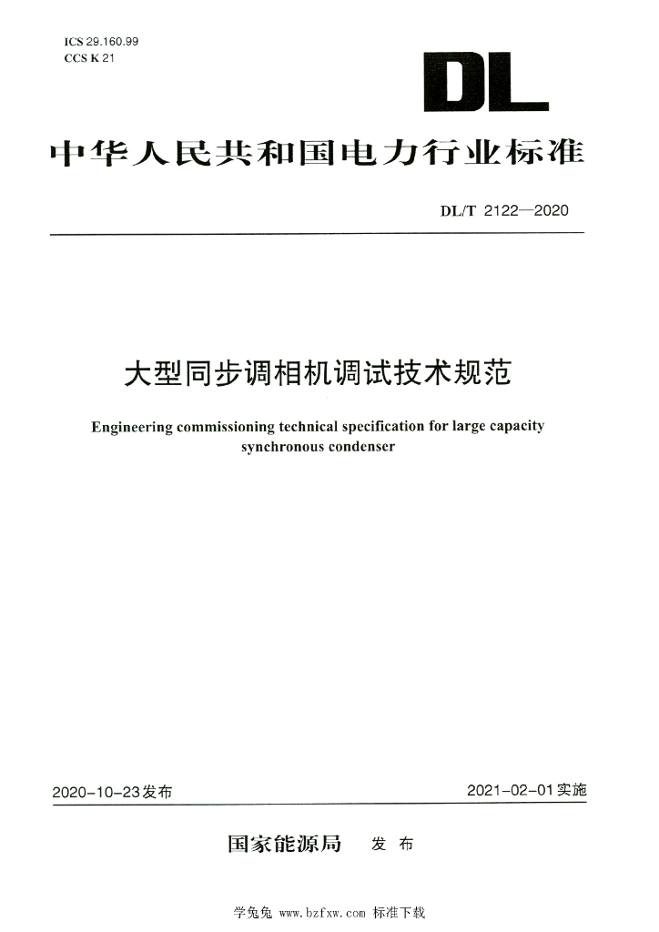 DL/T 2122-2020 大型同步调相机调试技术规范