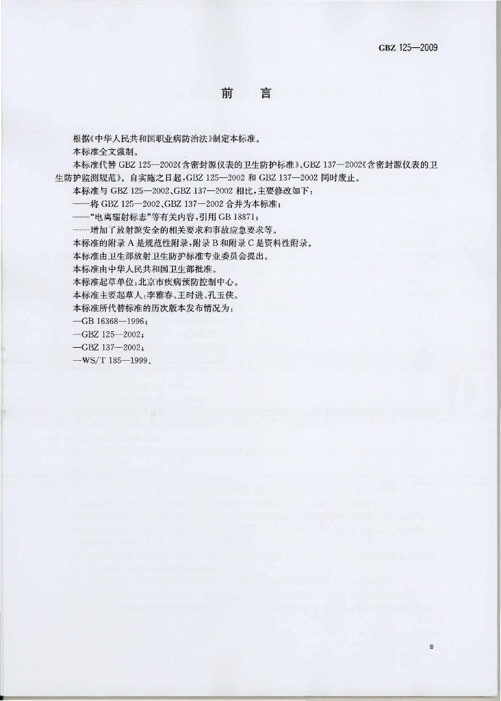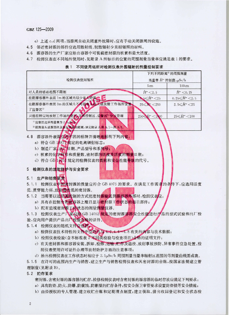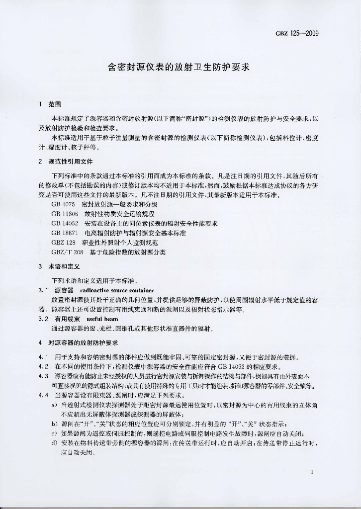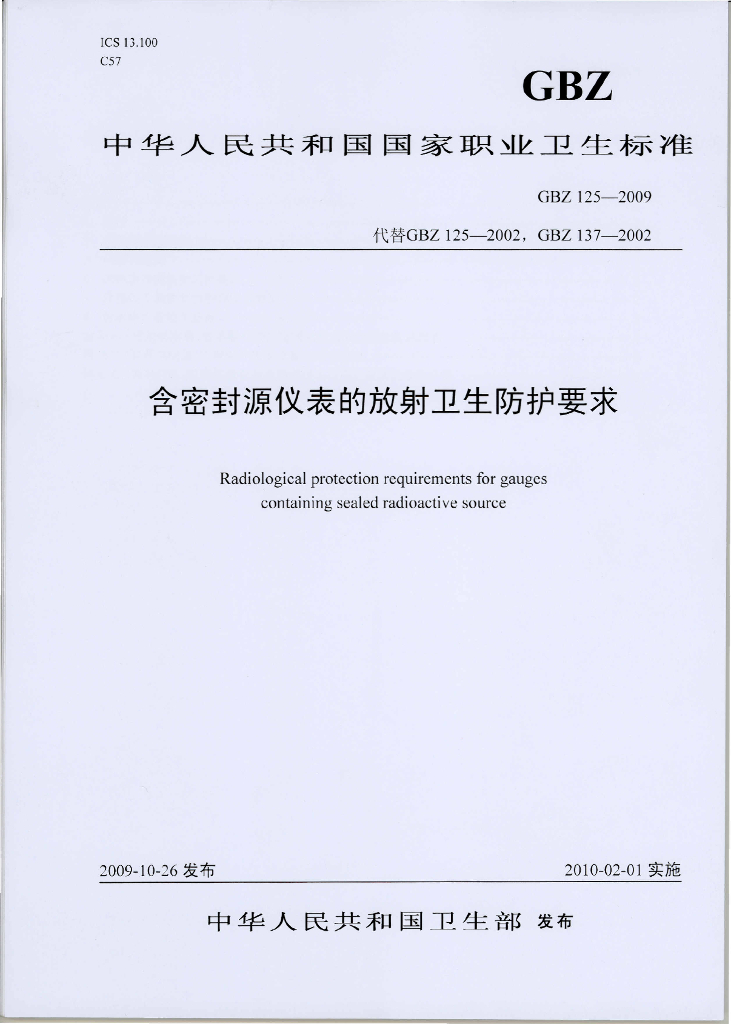 GBZ 125-2009 含密封源仪表的放射卫生防护要求