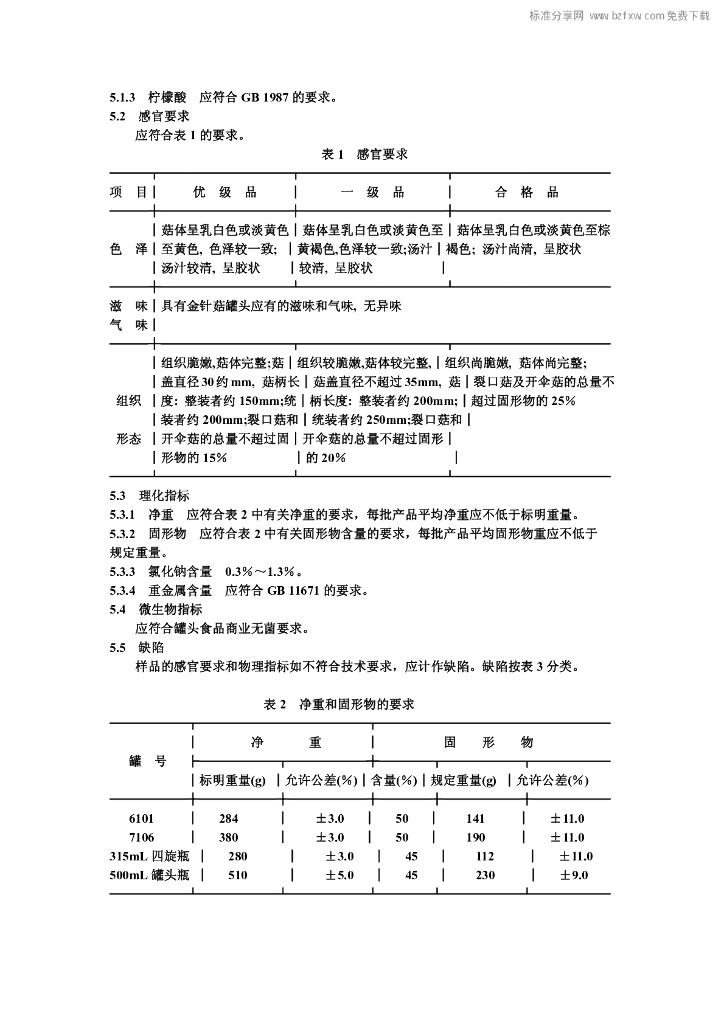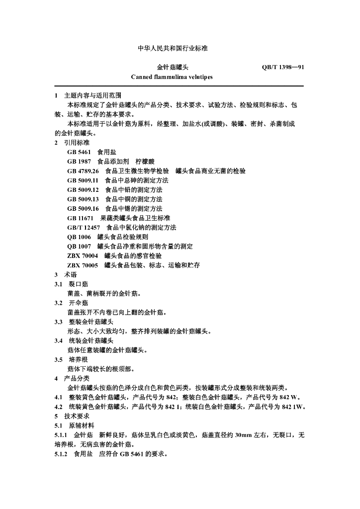 QB/T 1398-1991 金针菇罐头
