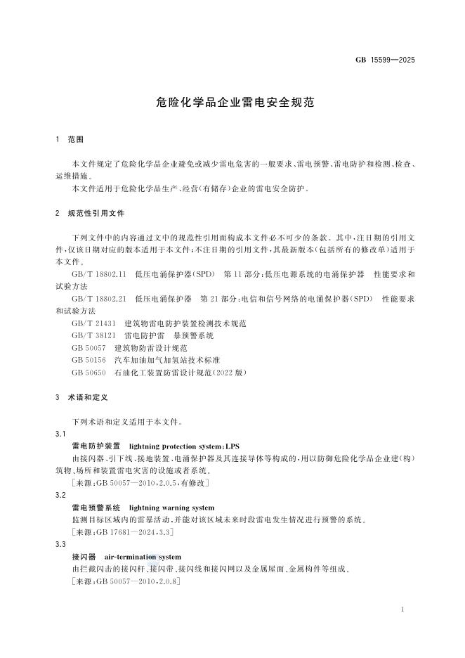 GB 15599-2025 危险化学品企业雷电安全规范