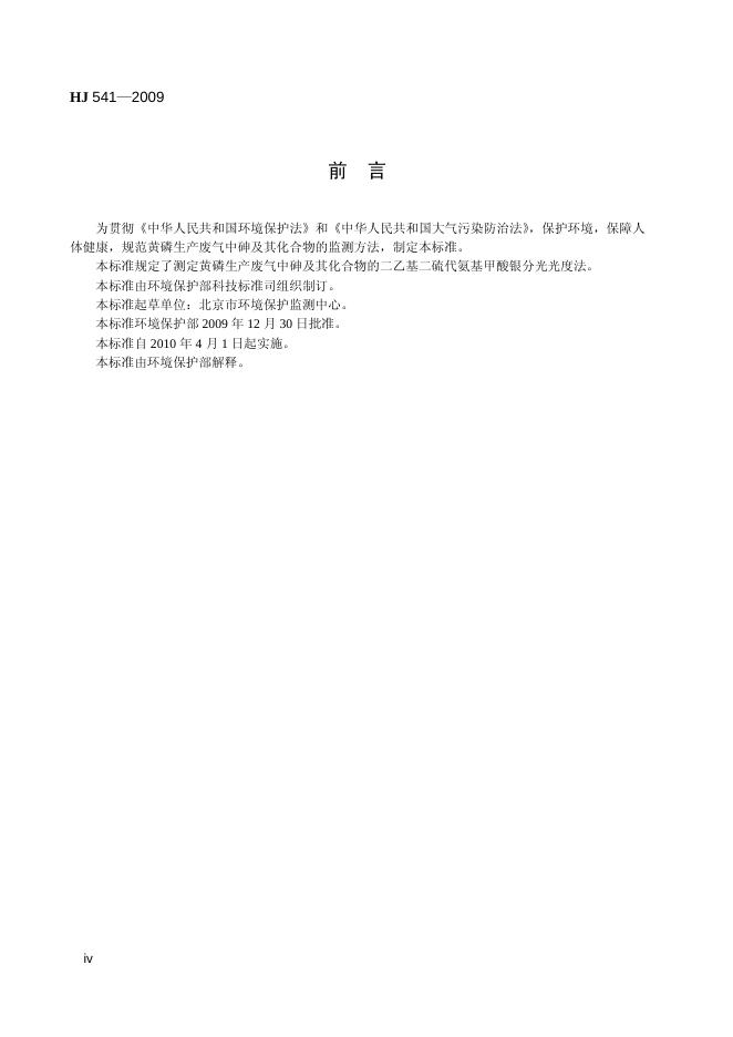 HJ 541-2009 黄磷生产废气 气态砷的测定 二乙基二硫代氨基甲酸银分光光度法(暂行)