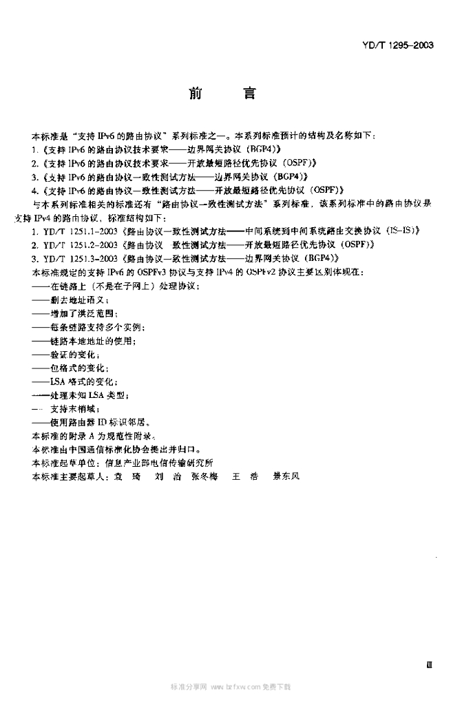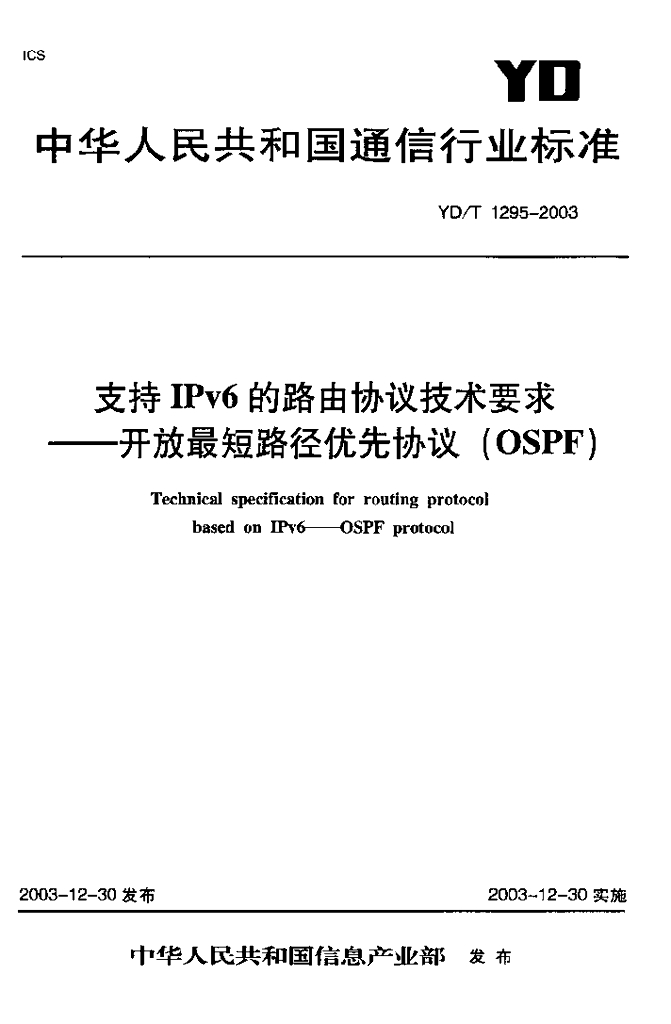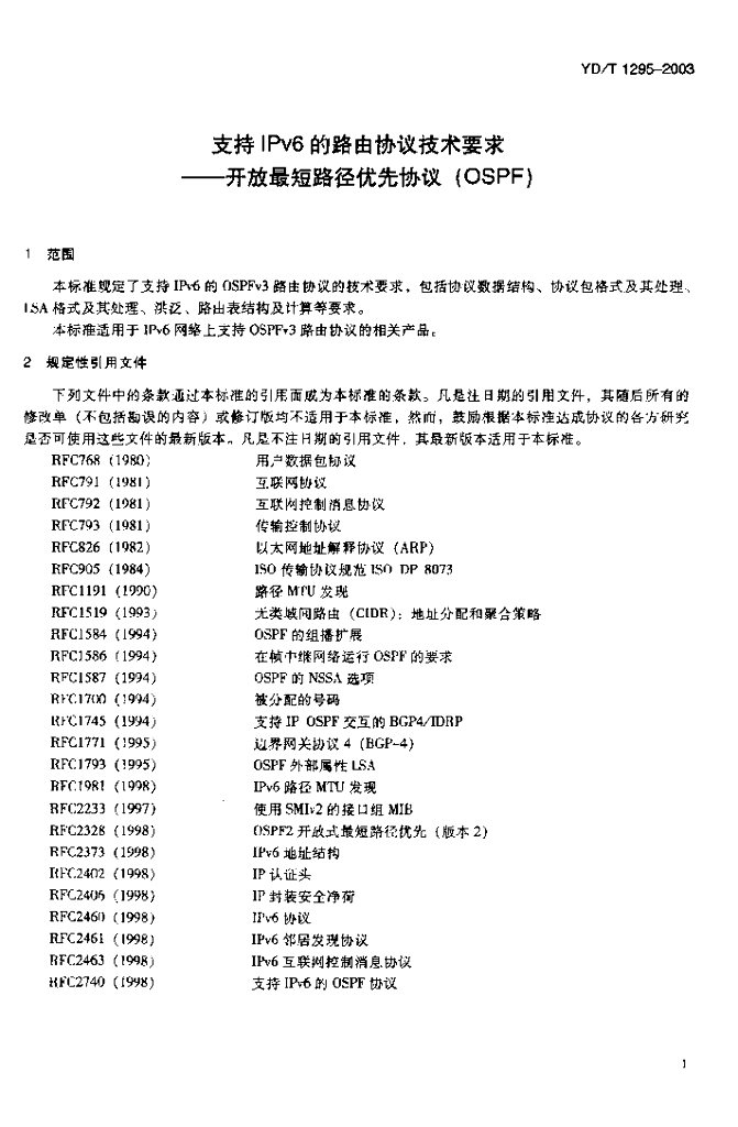 YD/T 1295-2003 支持 IPv6 的路由协议技术要求——开放最短路径优先协议(OSPF)