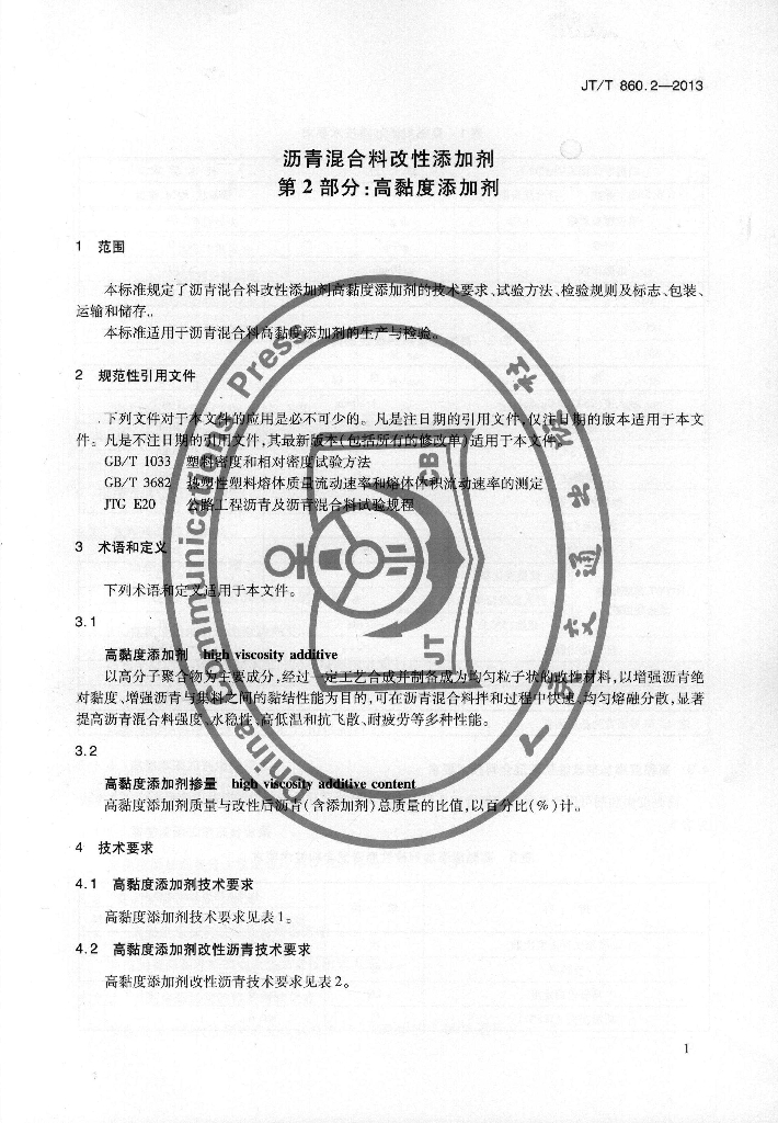 JT/T 860.2-2013 沥青混合料改性添加剂 第2部分:高黏度添加剂