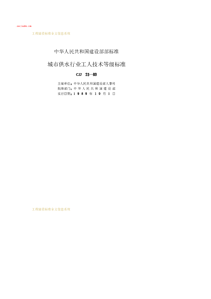 CJJ 23-1989 城市供水行业工人技术等级标准