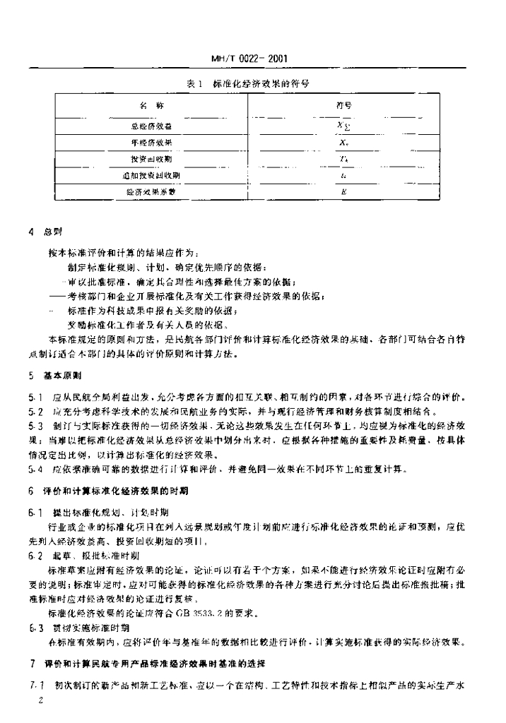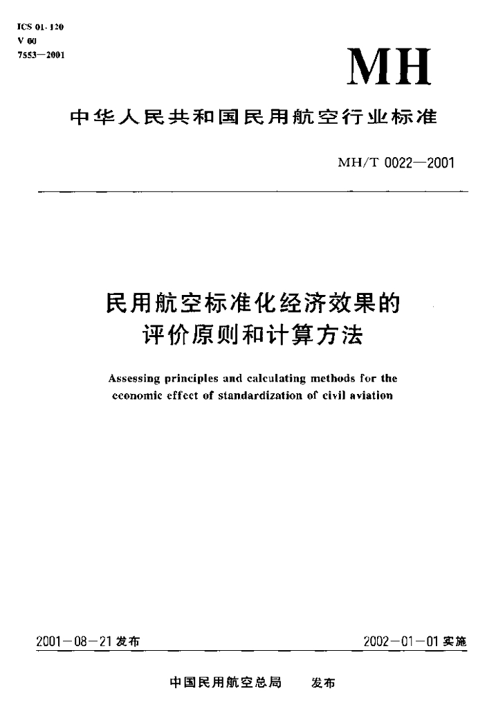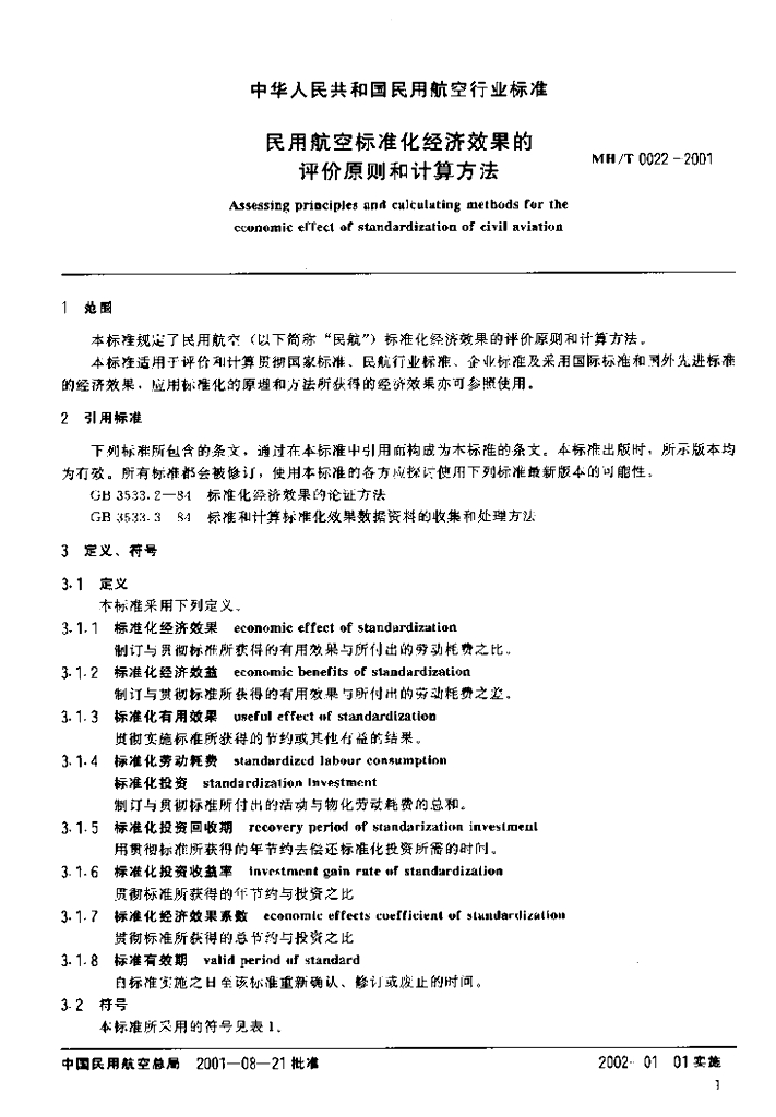 MH/T 0022-2001 民用航空标准化经济效果的评价原则和计算方法