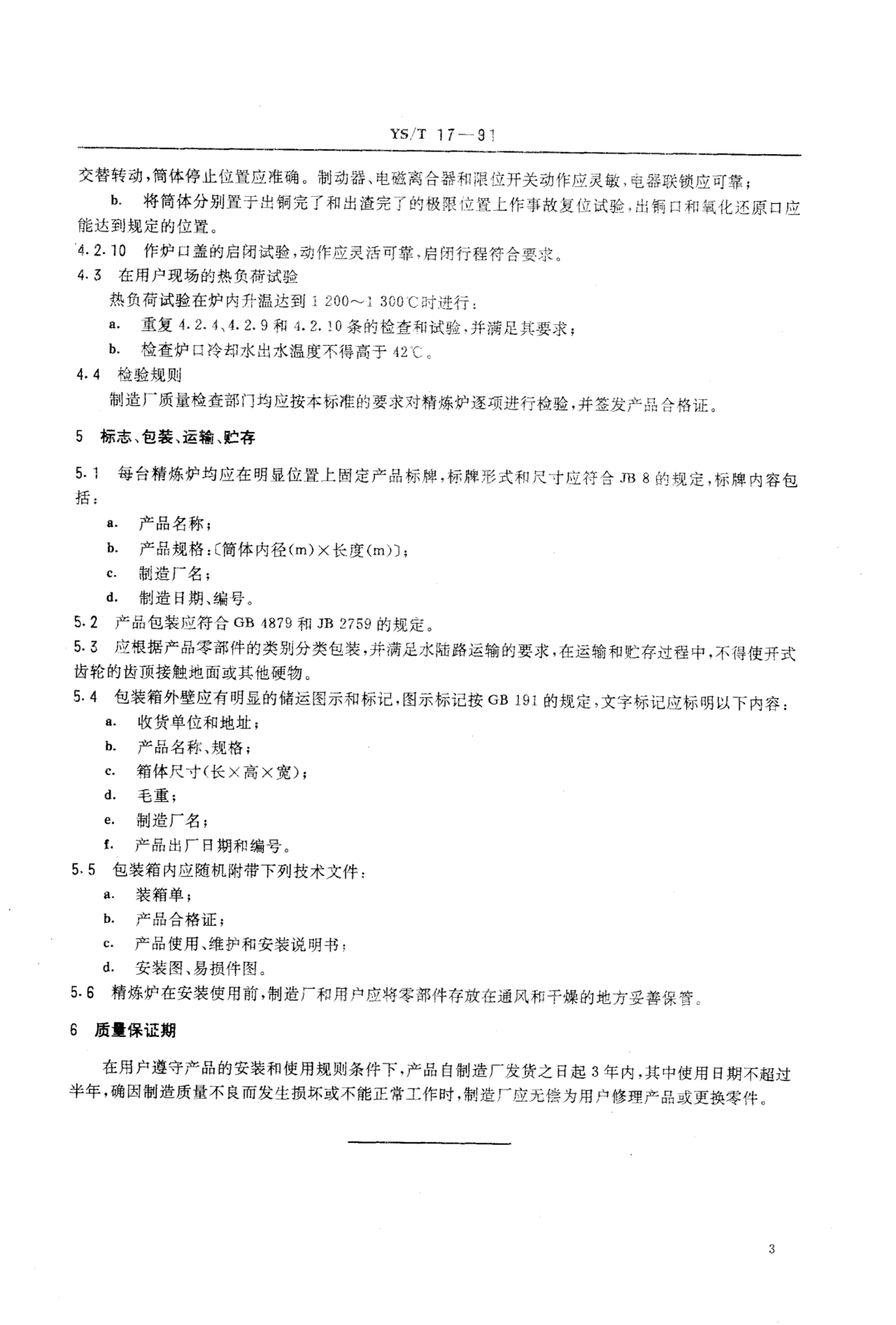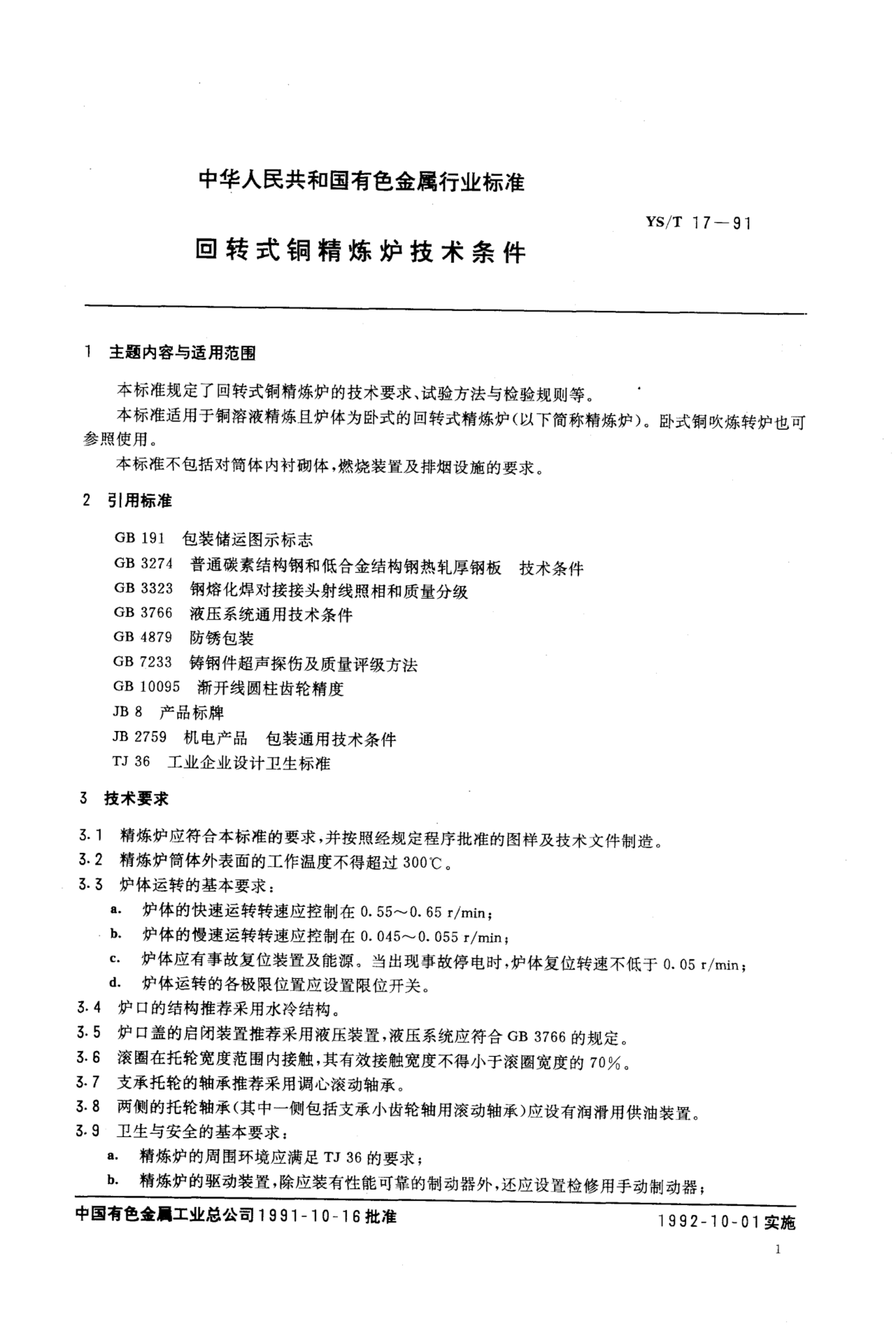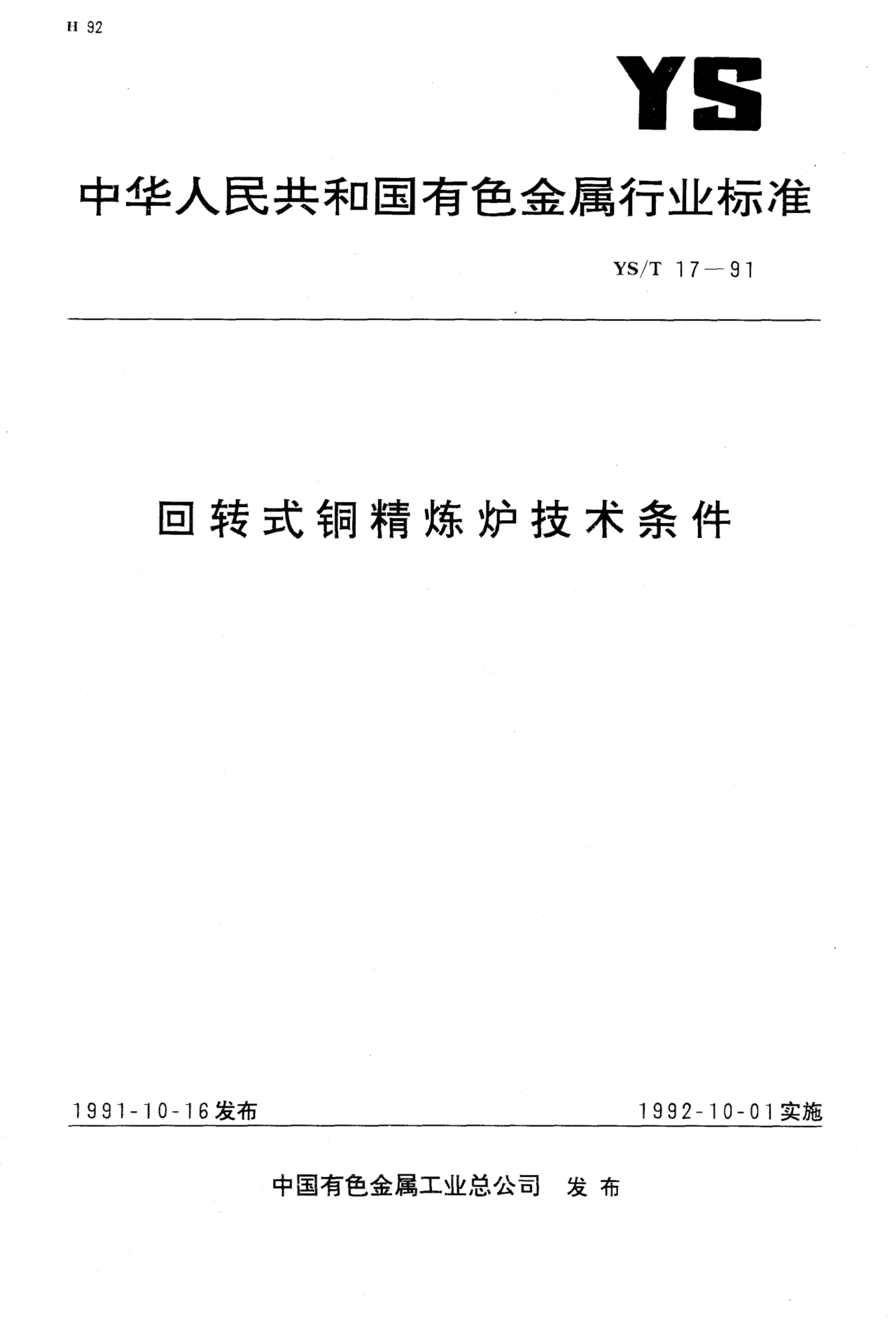 YS/T 17-1991 回转式铜精炼炉技术条件