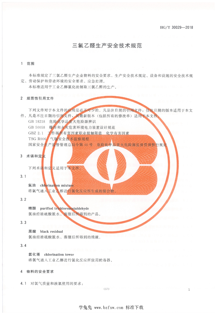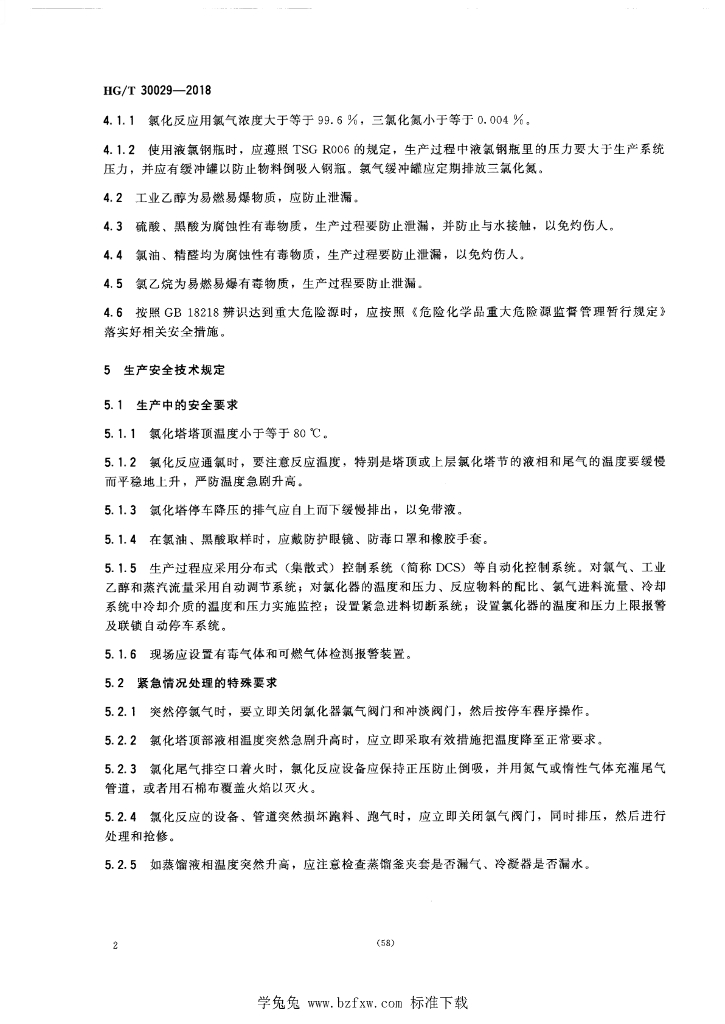 HG/T 30029-2018 三氯乙醛生产安全技术规范