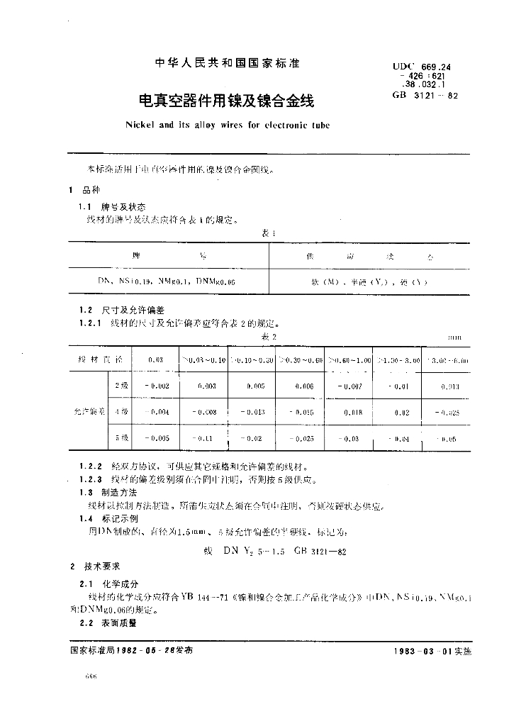 GB/T 3121-1982 电真空器件用镍及镍合金线
