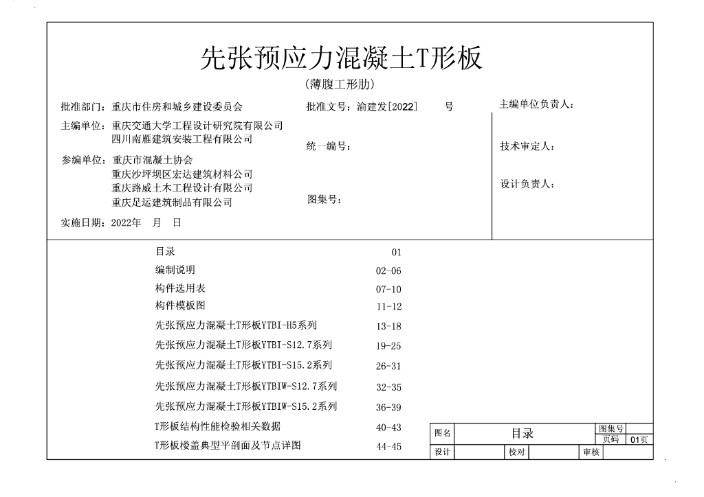 先张预应力混凝土T形板(薄腹工形肋)图集(征求意见稿)