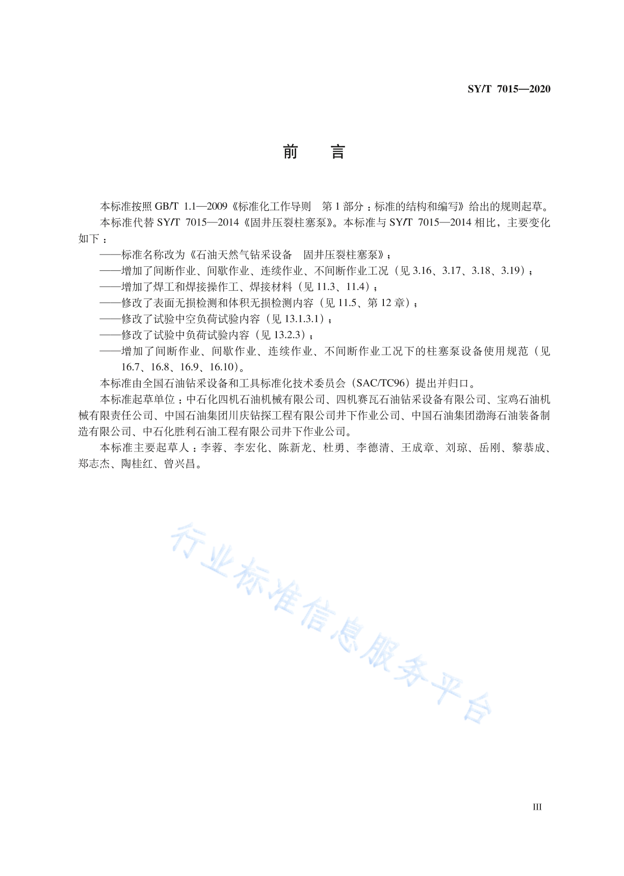 SY/T 7015-2020 石油天然气钻采设备 固井压裂柱塞泵