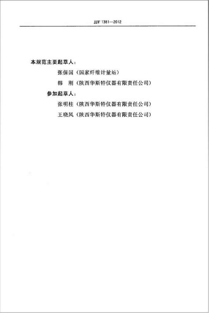 张保国(国家纤维计量站)、韩刚(陕西华斯特仪器有限责任公司)、张明柱(陕西华斯特仪器有限责任公司)、王晓凤(陕西华斯特仪器有限责任公司)