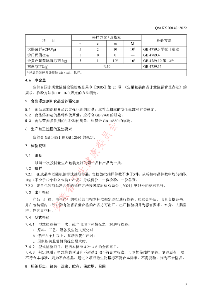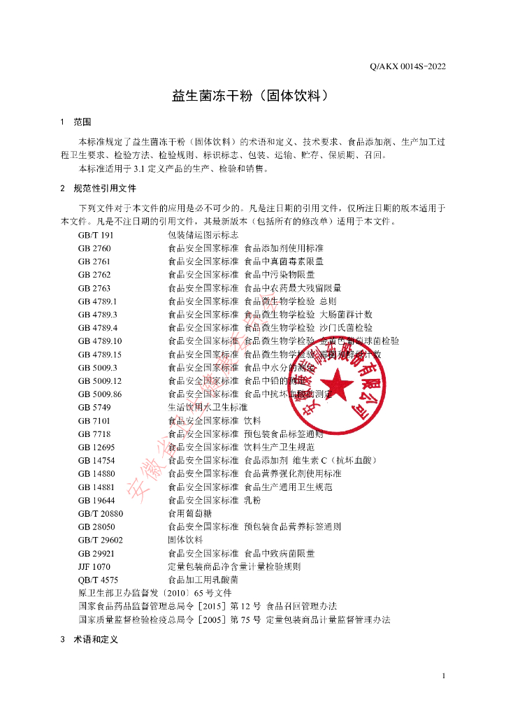 Q/AKX 0014S-2022 益生菌冻干粉(固体饮料)