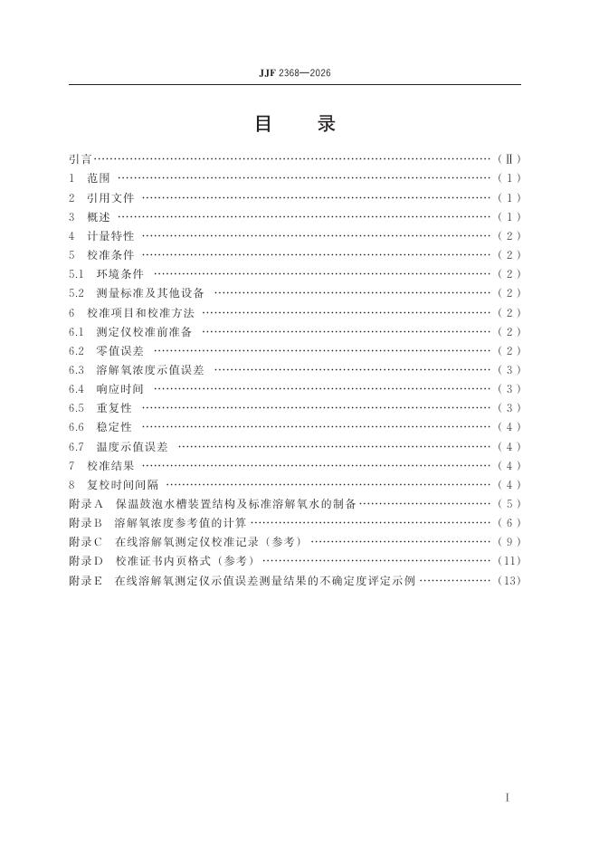 JJF 2368-2026 在线溶解氧测定仪校准规范