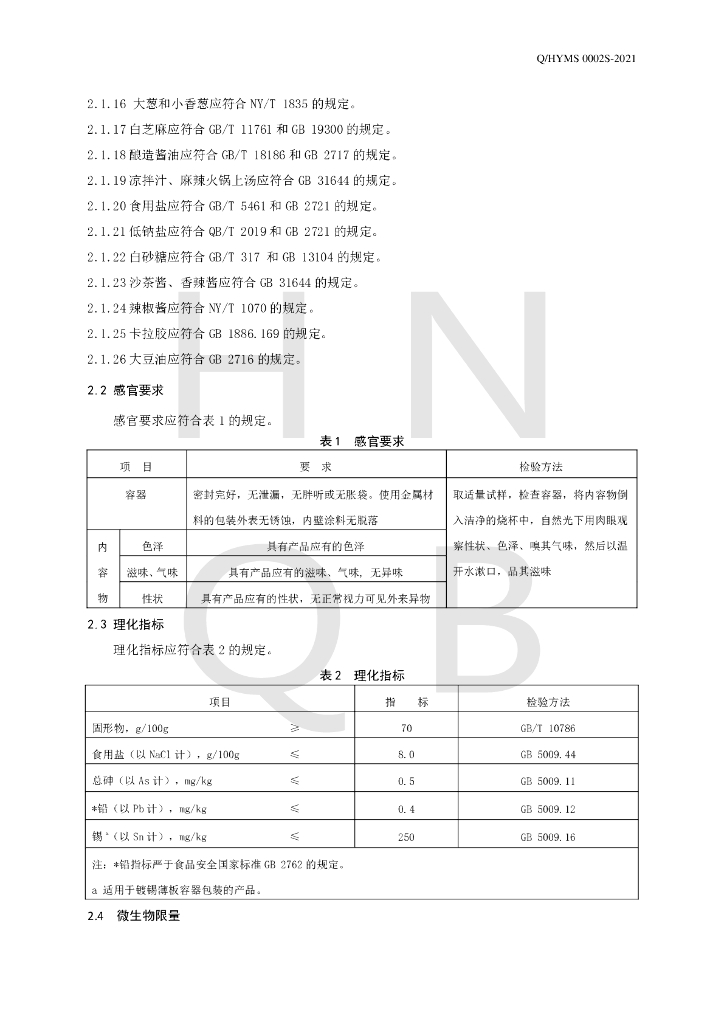 Q/HYMS 0002S-2021 豆制品菜肴罐头