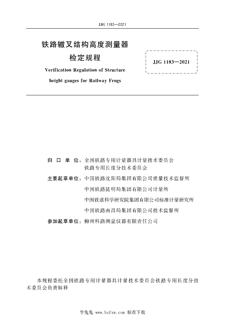 中国铁路沈阳局集团有限公司质量技术监督所、中国铁路昆明局集团有限公司计量所、中国铁道科学研究院集团有限公司标准计量研究、中国铁路南昌局集团有限公司技术监督所、柳州科路测量仪器有限责任公司