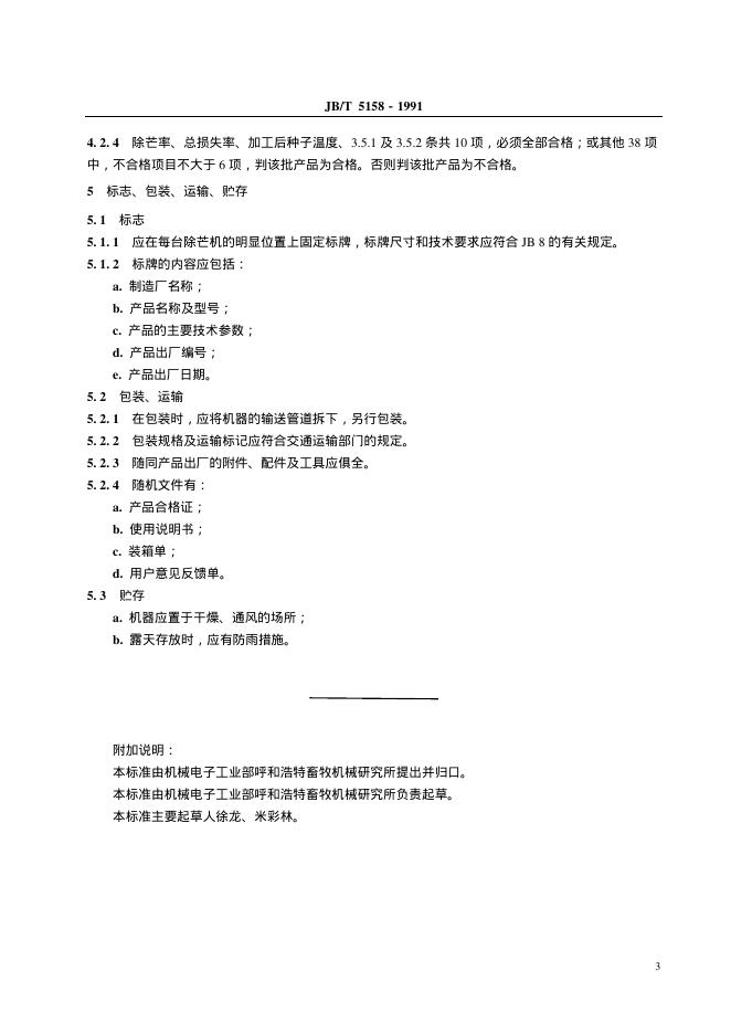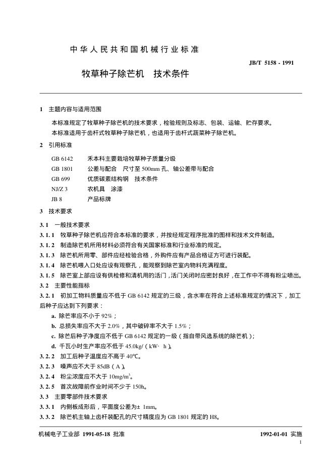 JB 5158-1991 牧草播种子除芒机技术条件