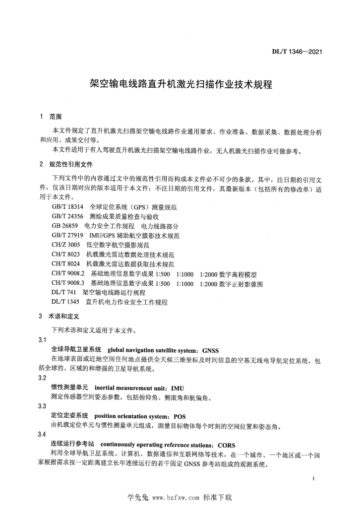 DL/T 1346-2021 架空输电线路直升机激光扫描作业技术规程
