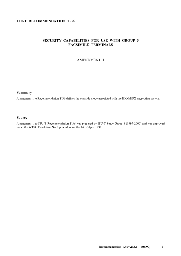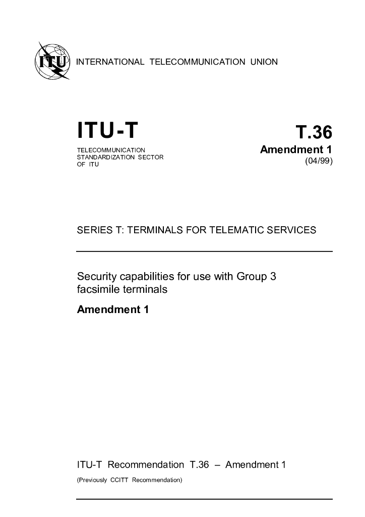 ITU-T T.36-1997/Amd 1-1999 用于3组传真终端的安全功能