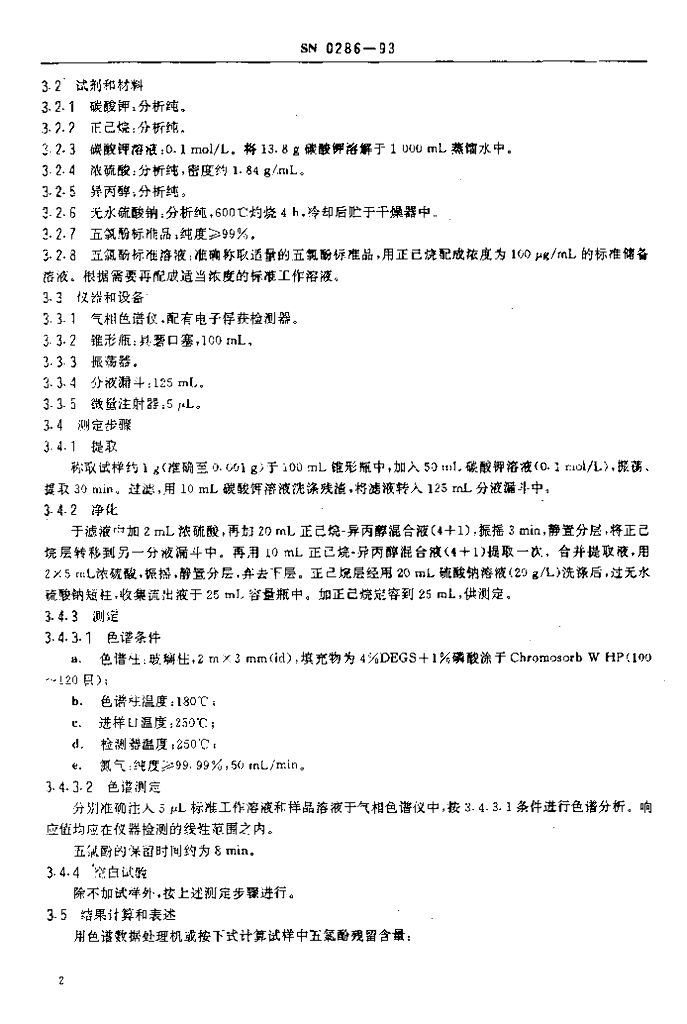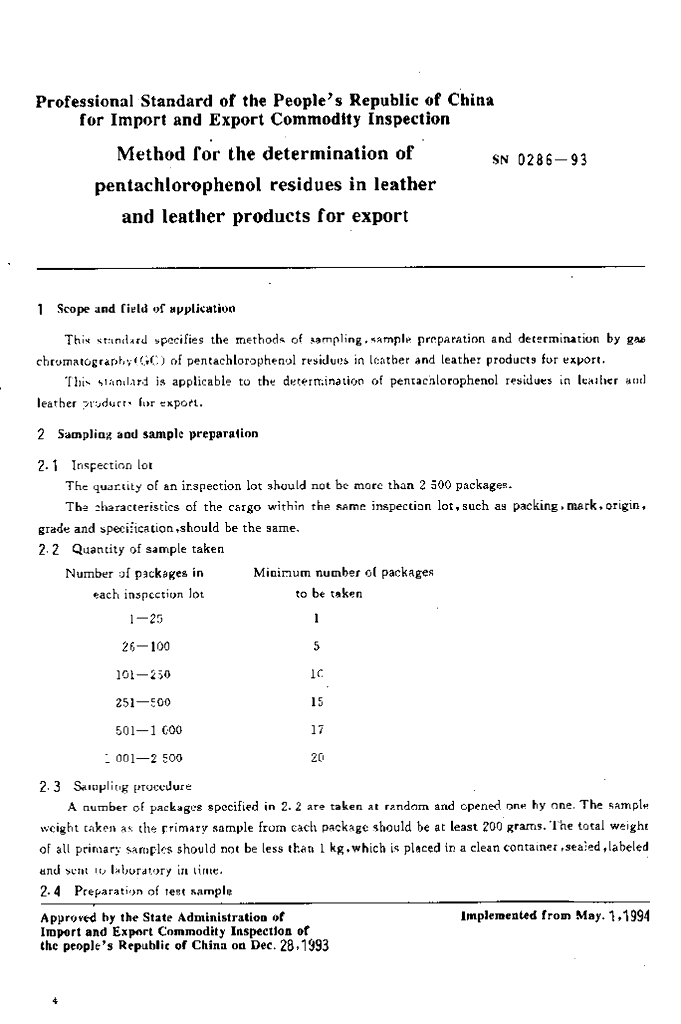 SN 0286-1993 出口皮革及皮革制品中五氯酚残留量检验方法