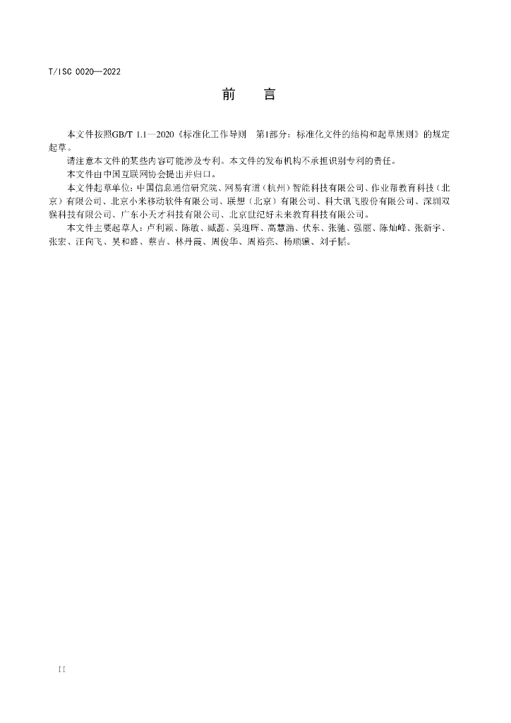 中国信息通信研究院、网易有道(杭州)智能科技有限公司、作业帮教育科技(北 京)有限公司、北京小米移动软件有限公司、联想(北京)有限公司、科大讯飞股份有限公司、深圳双 猴科技有限公司、广东小天才科技有限公司、北京世纪好未来教育科技有限公司