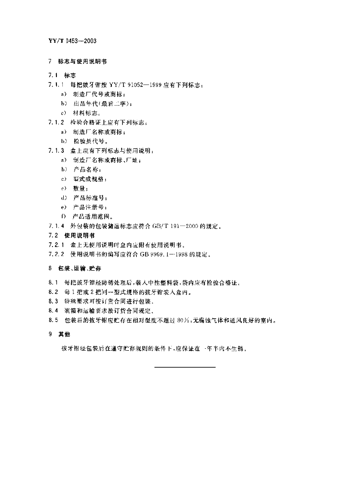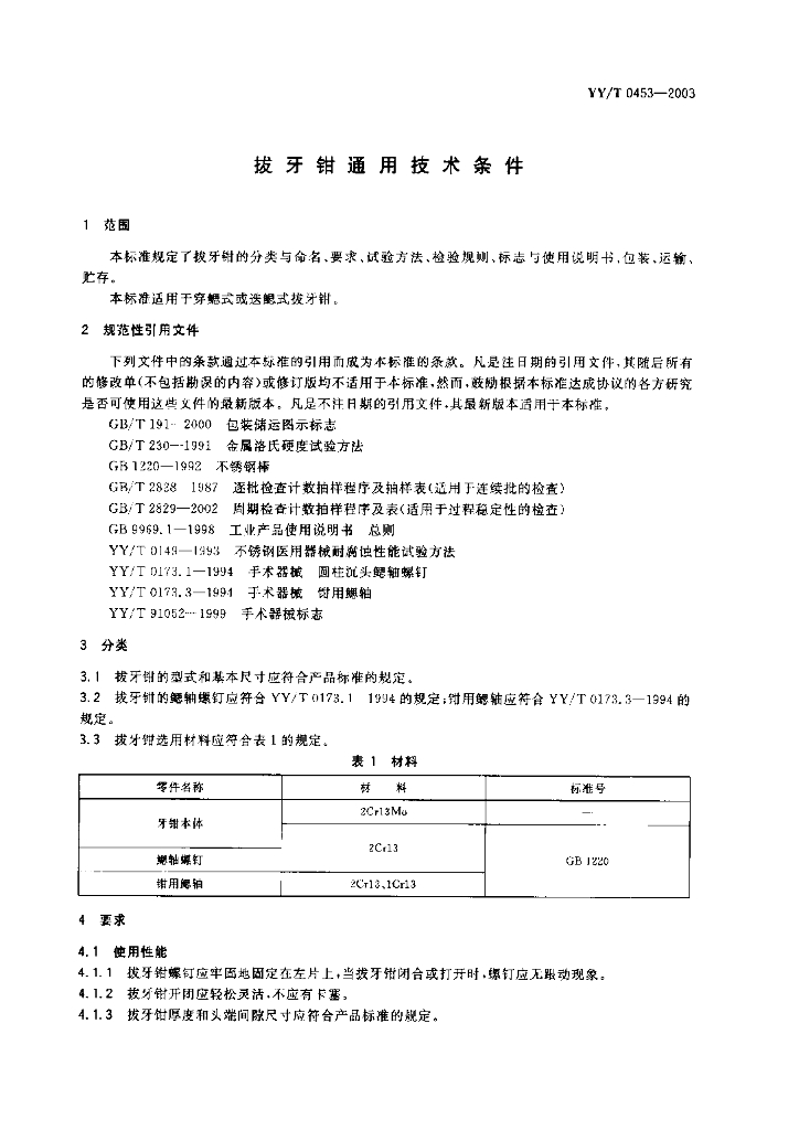 YY/T 0453-2003 拔牙钳通用技术条件