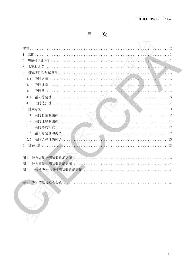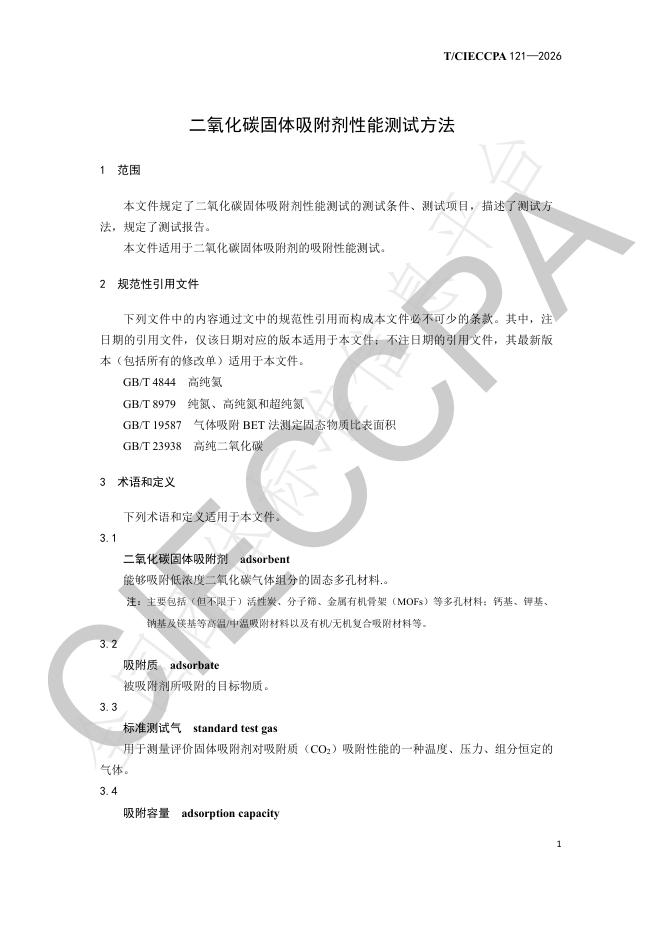 T/CIECCPA 121-2026 二氧化碳固体吸附剂性能测试方法