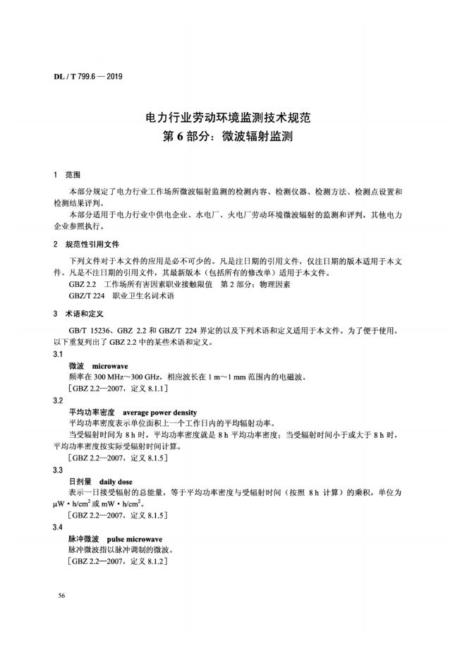 DL/T 799.6-2019 电力行业劳动环境监测技术规范 第6部分:微波辐射监测
