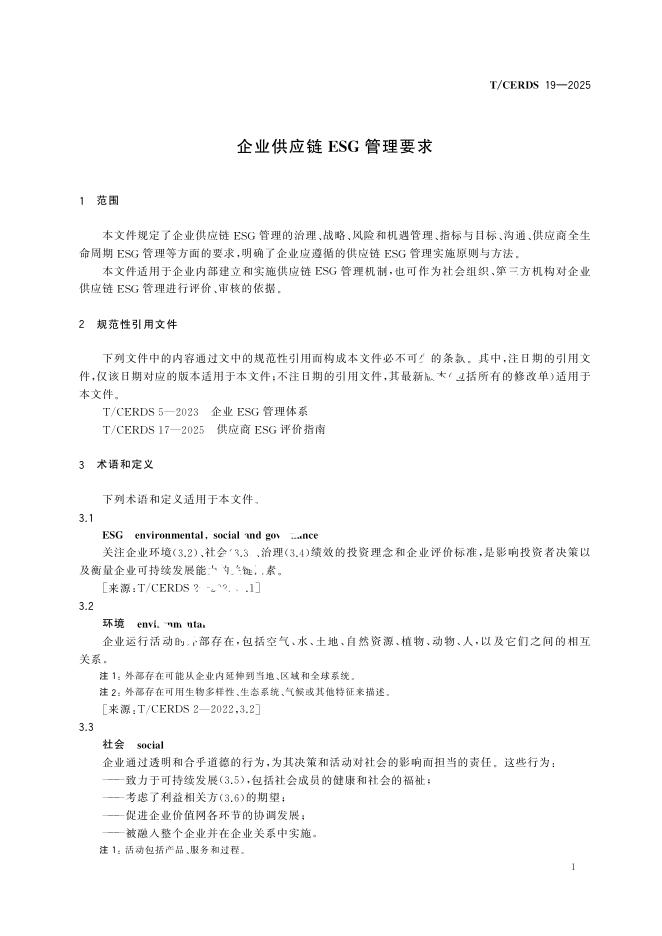T/CERDS 19-2025 企业供应链ESG管理要求