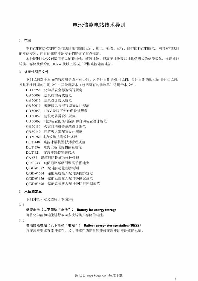 Q/GDW/Z 1769-2012 电池储能电站技术导则