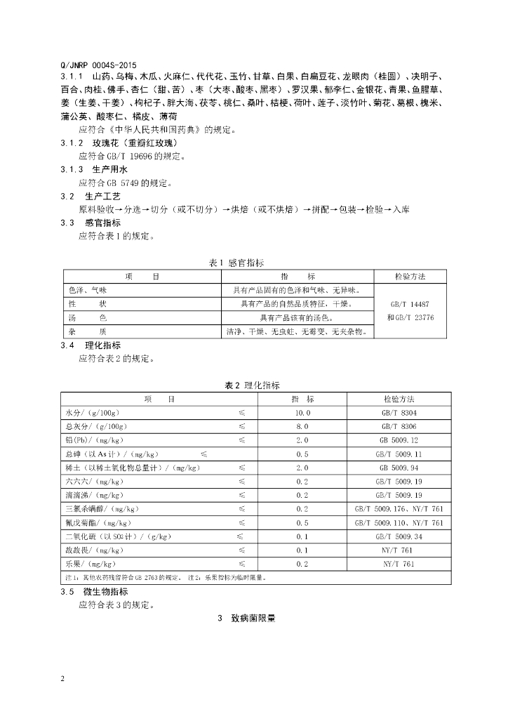 Q/JNRP 0004S-2015 济南润品商贸有限公司 代用茶
