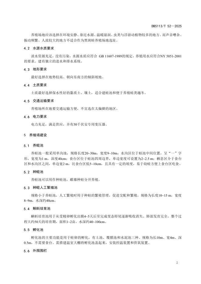 DB5113/T 52-2025 黑斑蛙养殖技术规范