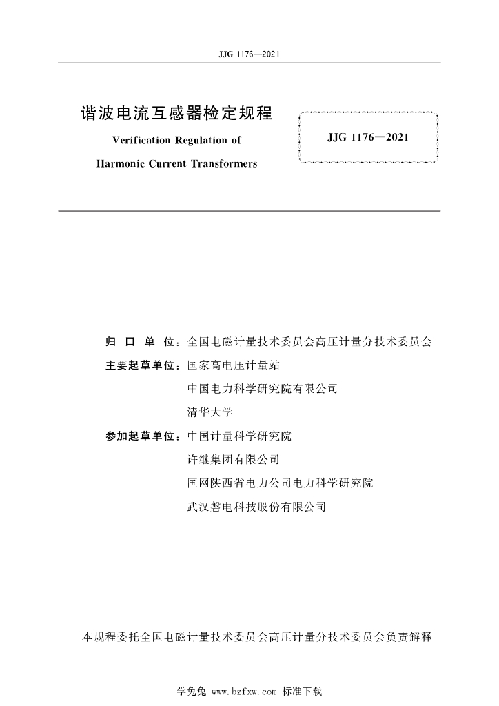 国家高电压计量站、中国电力科学研究院有限公司、清华大学、中国计量科学研究院、许继集团有限公司、国网陕西省电力公司电力科学研究院、武汉磐电科技股份有限公同
