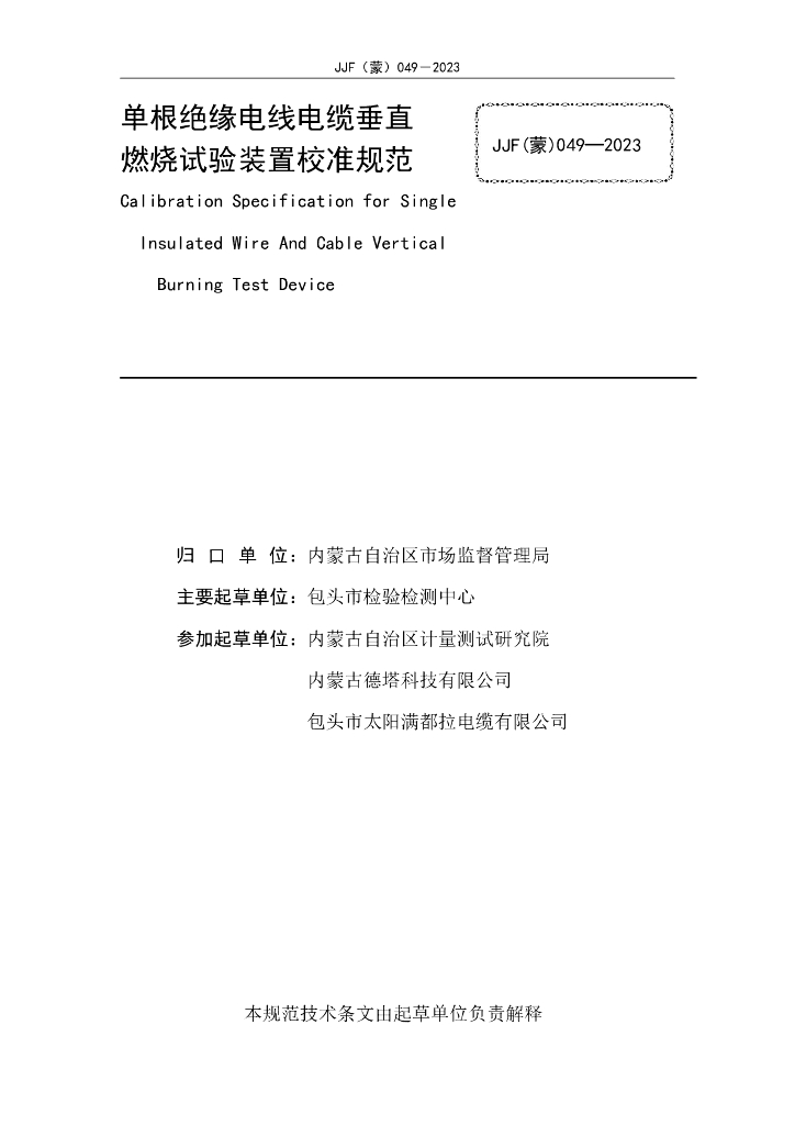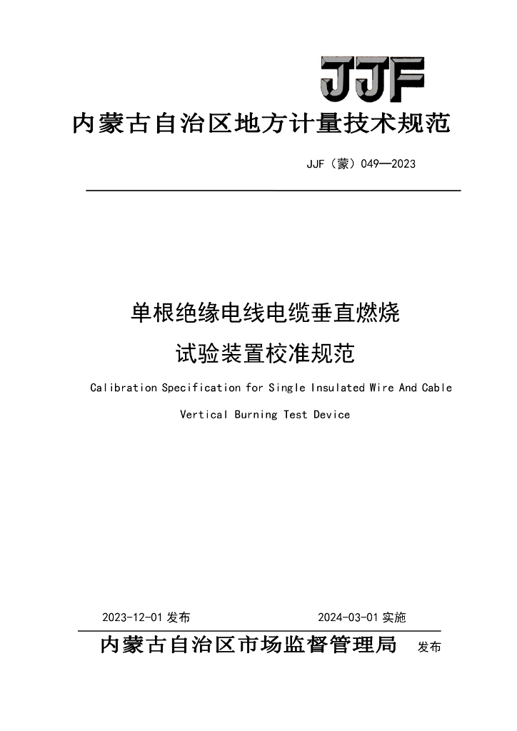 JJF(蒙)049-2023 单根绝缘电线电缆垂直燃烧试验装置校准规范