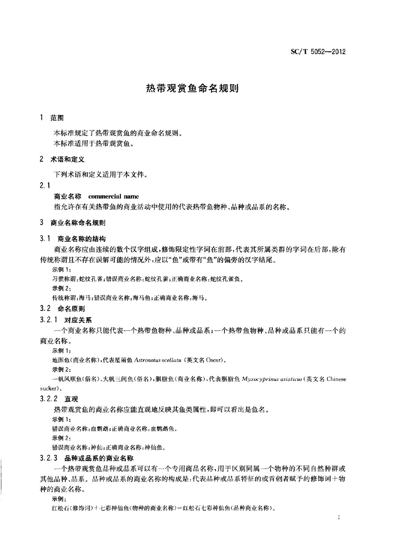 SC/T 5052-2012 热带观赏鱼命名规则