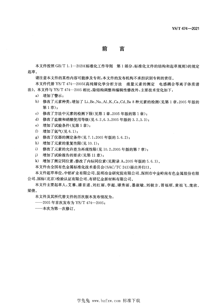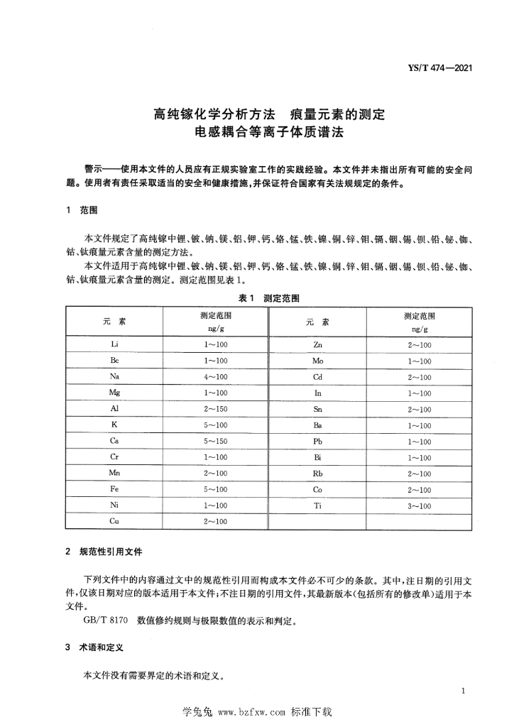 YS/T 474-2021 高纯镓化学分析方法 痕量元素的测定 电感耦合等离子体质谱法