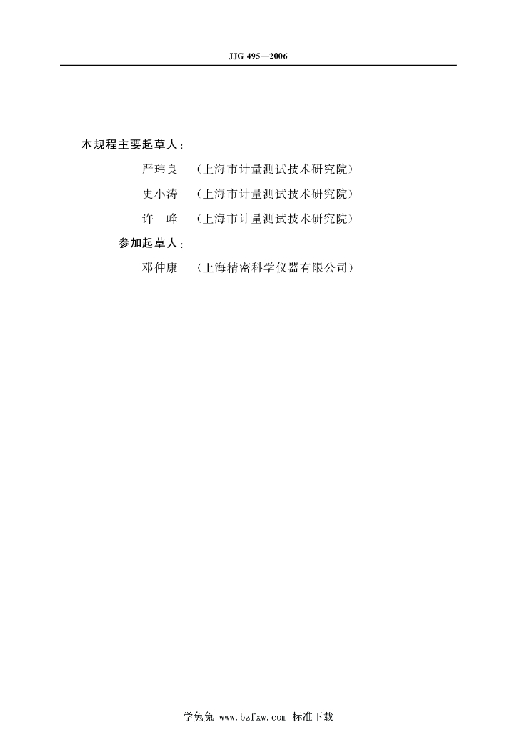 严玮良(上海市计量测试技术研究院)、史小涛(上海市计量测试技术研究院)、许峰(上海市计量测试技术研究院)、邓仲康(上海精密科学仪器有限公司)
