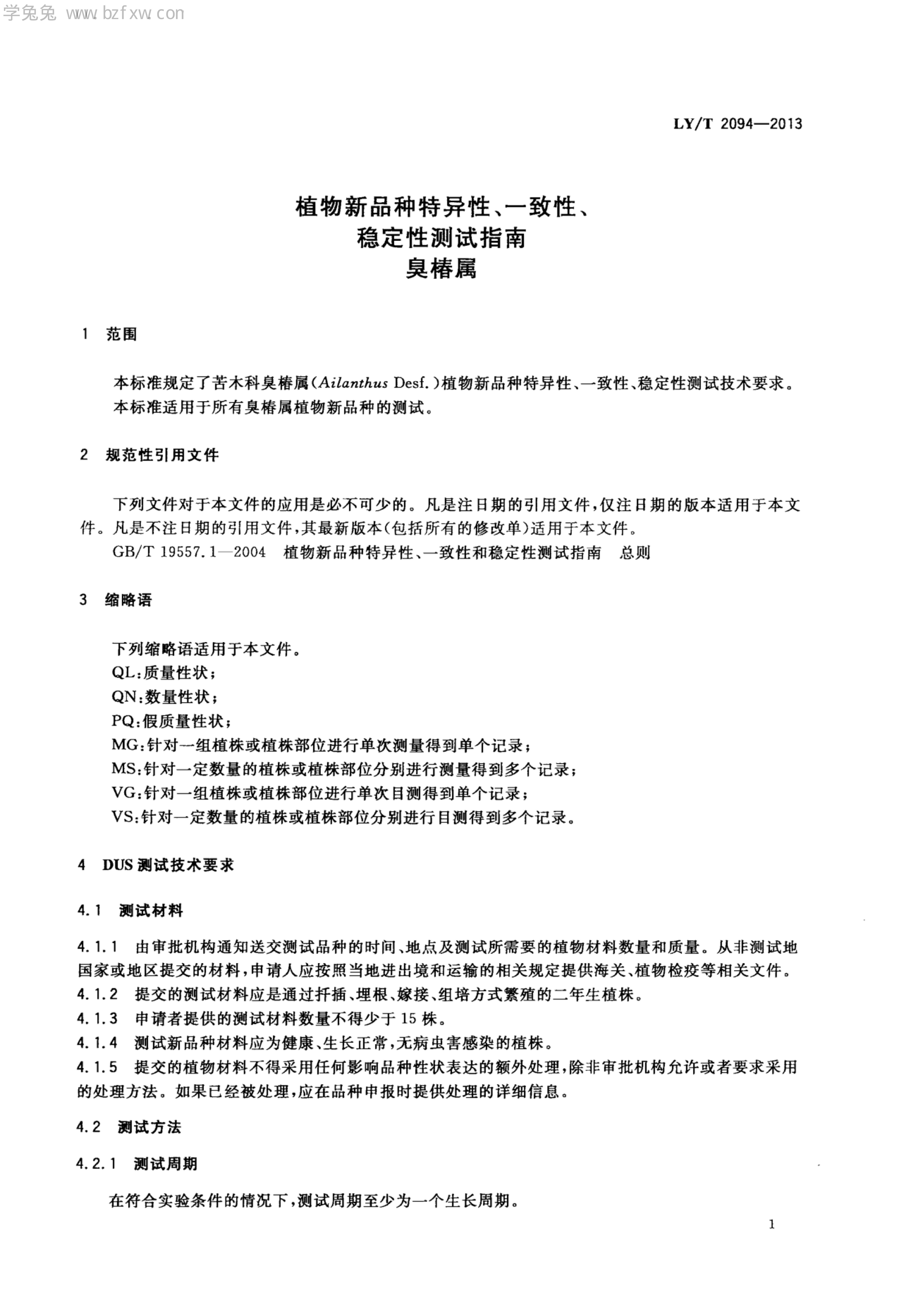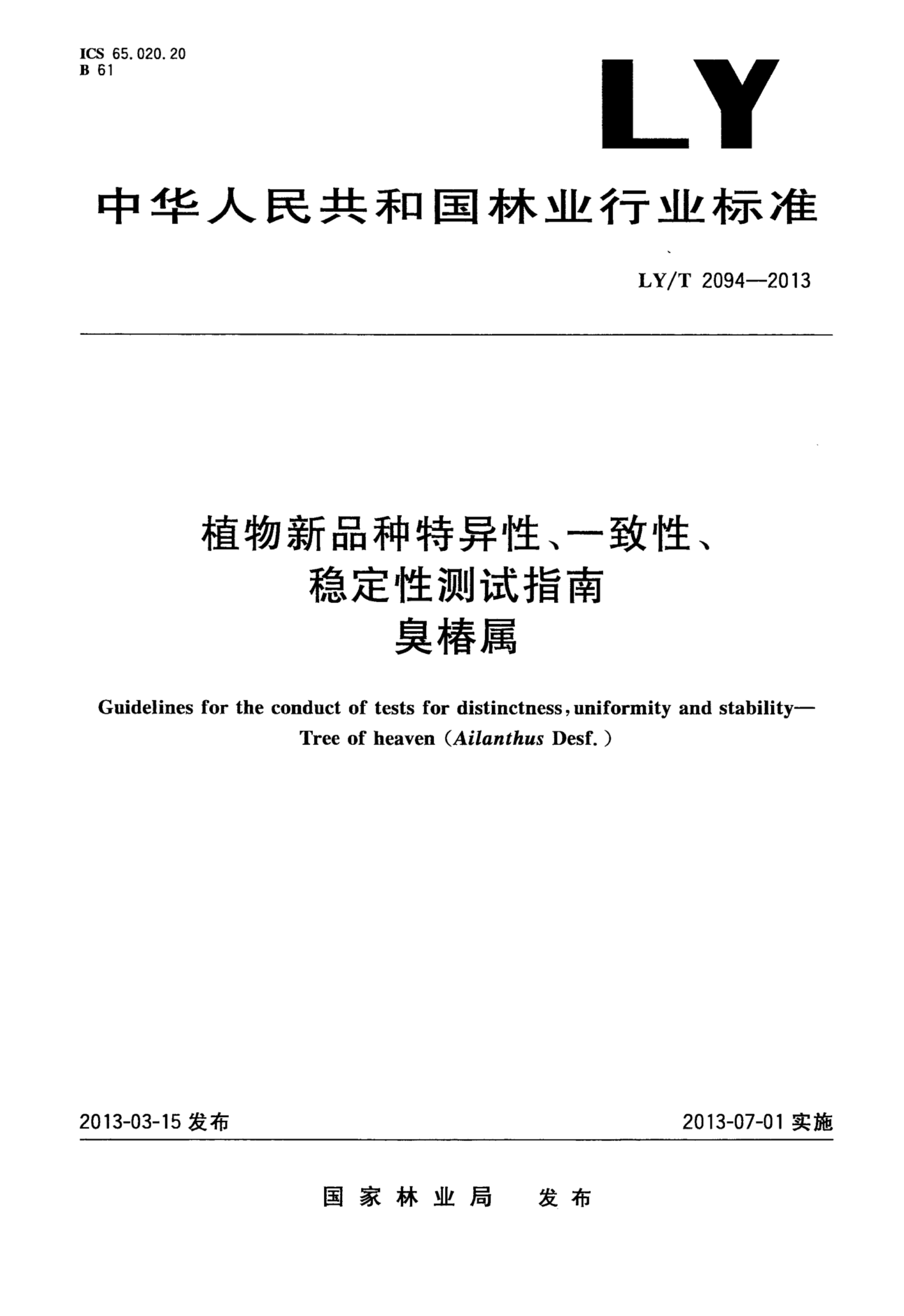 LY/T 2094-2013 植物新品种特异性、一致性、稳定性测试指南 臭椿属