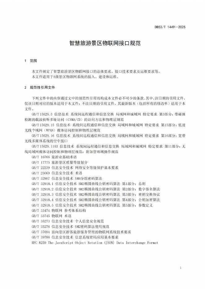 DB53/T 1449-2025 智慧旅游景区物联网接口规范