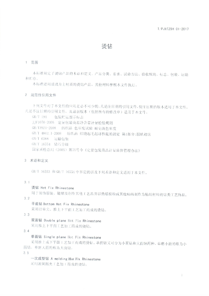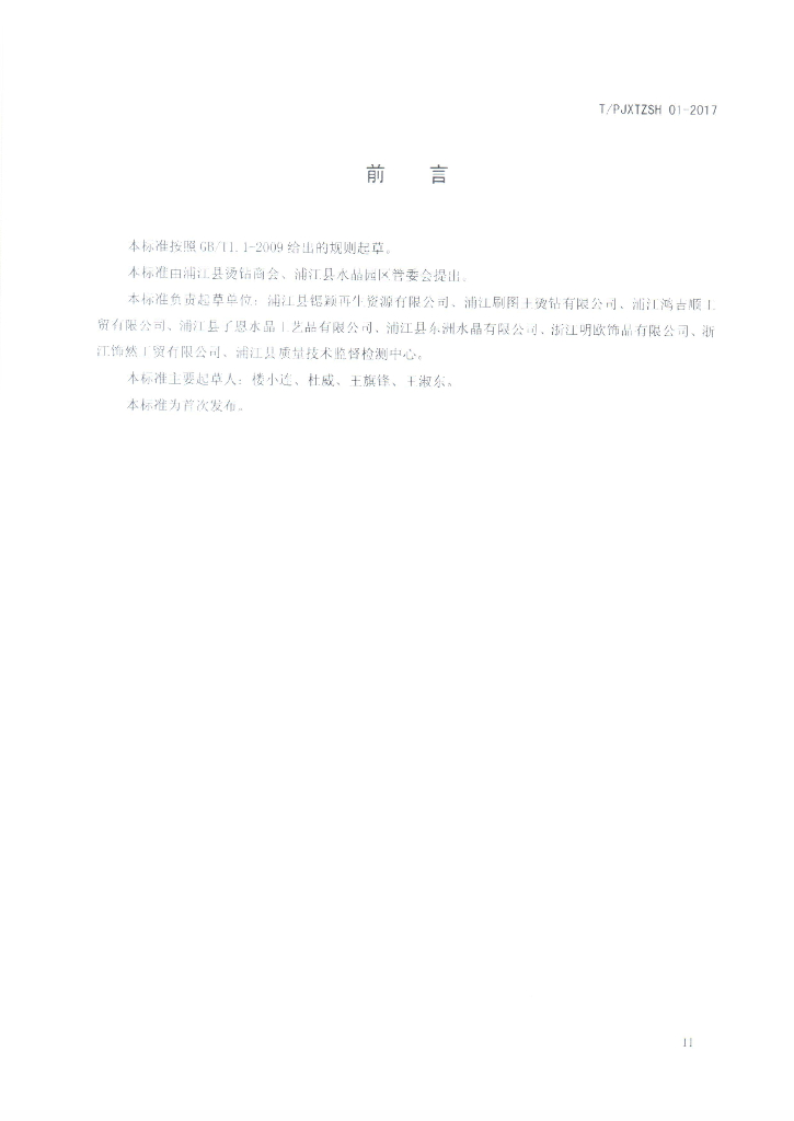 本标准由浦江县质量技术监督检测中心牵头组织制订。 本标准参与起草单位:浦江县锶颖再生资源有限公司、浦江刷图王烫钻有限公司、浦江鸿吉顺工贸有限公司、浦江县子恩水晶工艺品有限公司、浦江县东洲水晶有限公司、浙江明欧饰品有限公司、浙江饰然工贸有限公司、浦江县质量技术监督检测中心