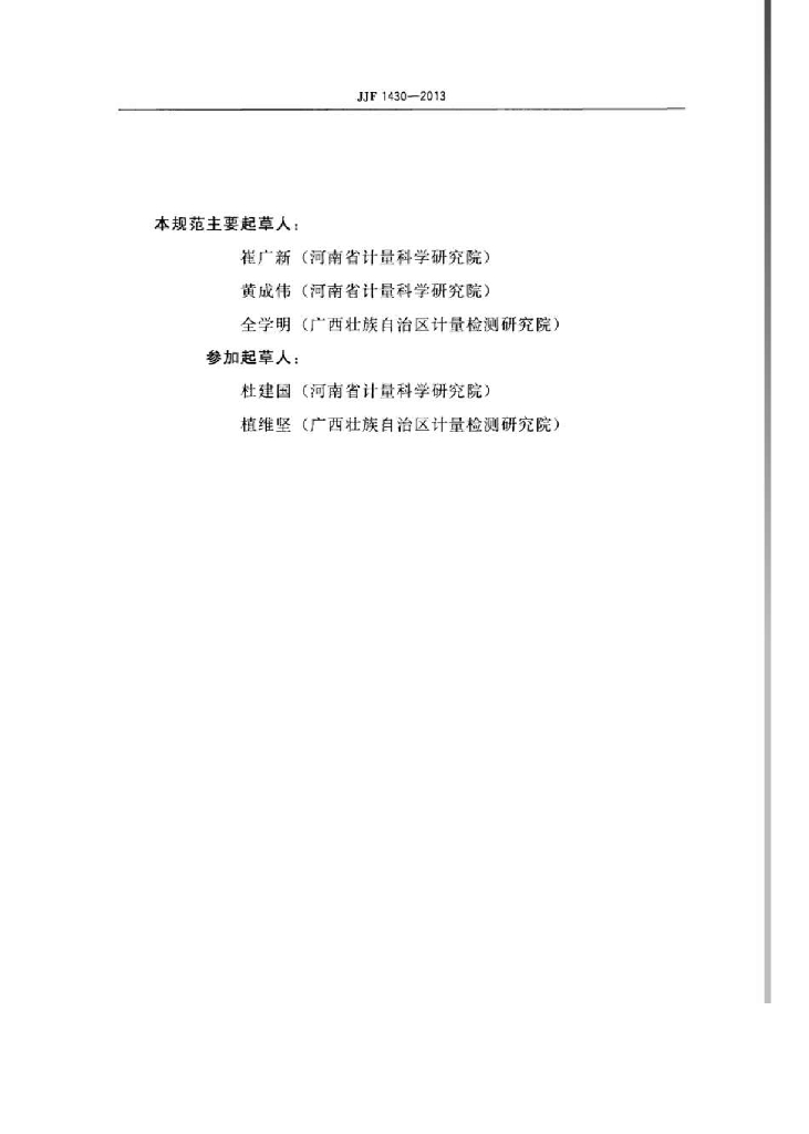崔广新(河南省计量科学研究院)、黄成伟(河南省计量科学研究院)、全学明(广西壮族自治区计量检测研究院)、杜建国(河南省计量科学研究院)、植维坚(广西壮族自治区计量检测研究院)