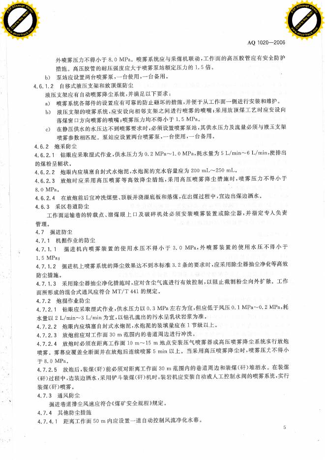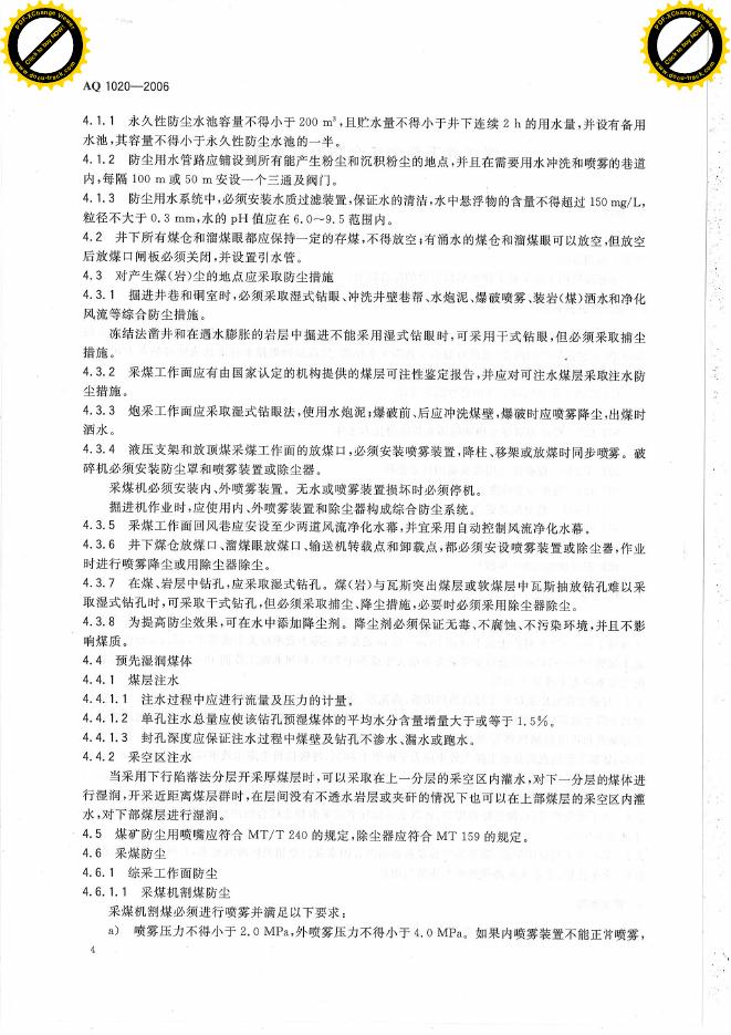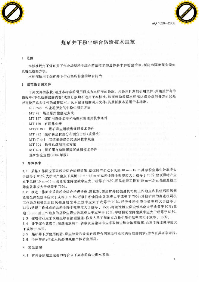 AQ 1020-2006 煤矿井下粉尘综合防治技术规范