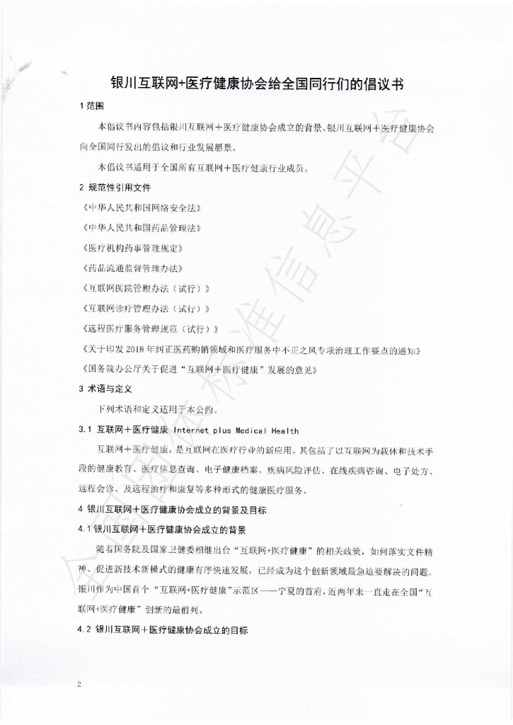 T/YAIMH 001-2018 银川互联网+医疗健康协会给全国同行们的倡议书