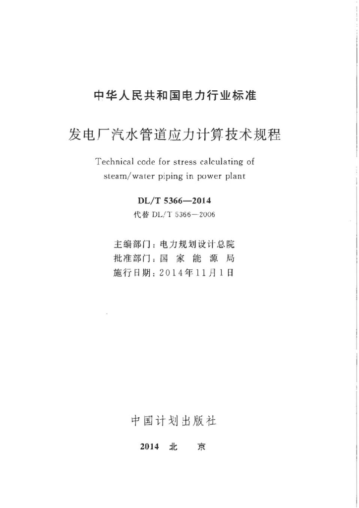 DL/T 5366-2014 发电厂汽水管道应力计算技术规程