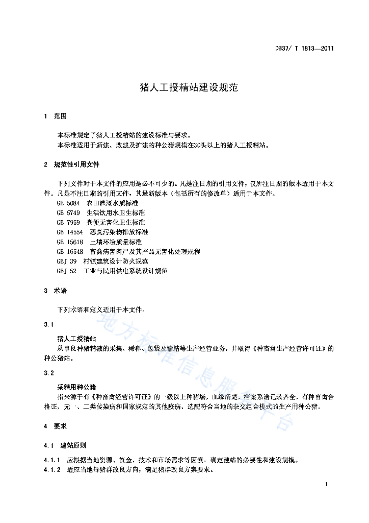 DB37/T 1813-2011 猪人工授精站建设规范