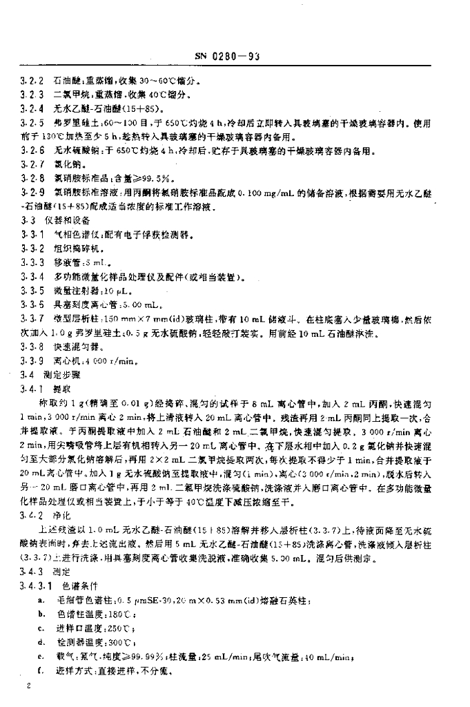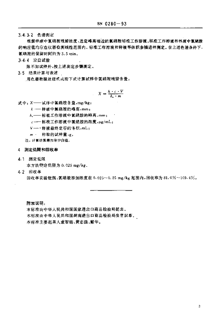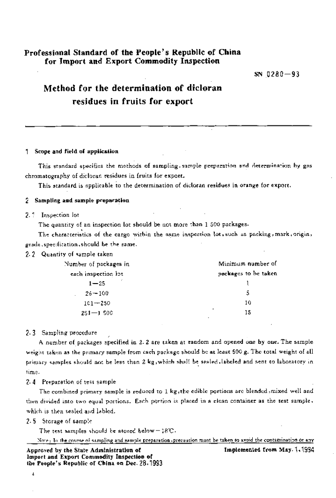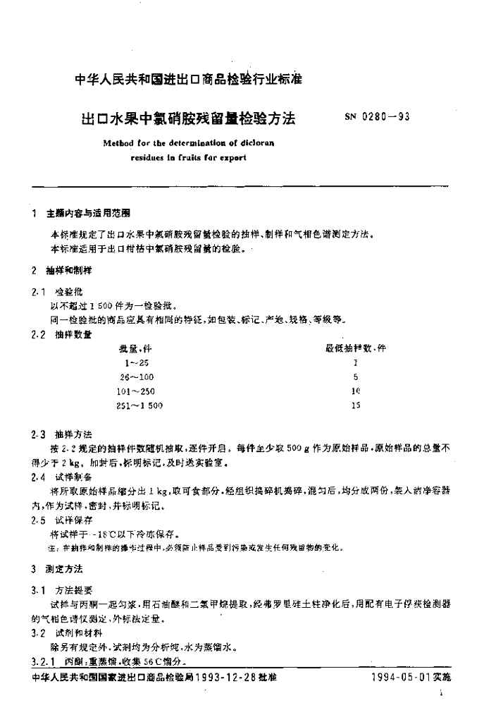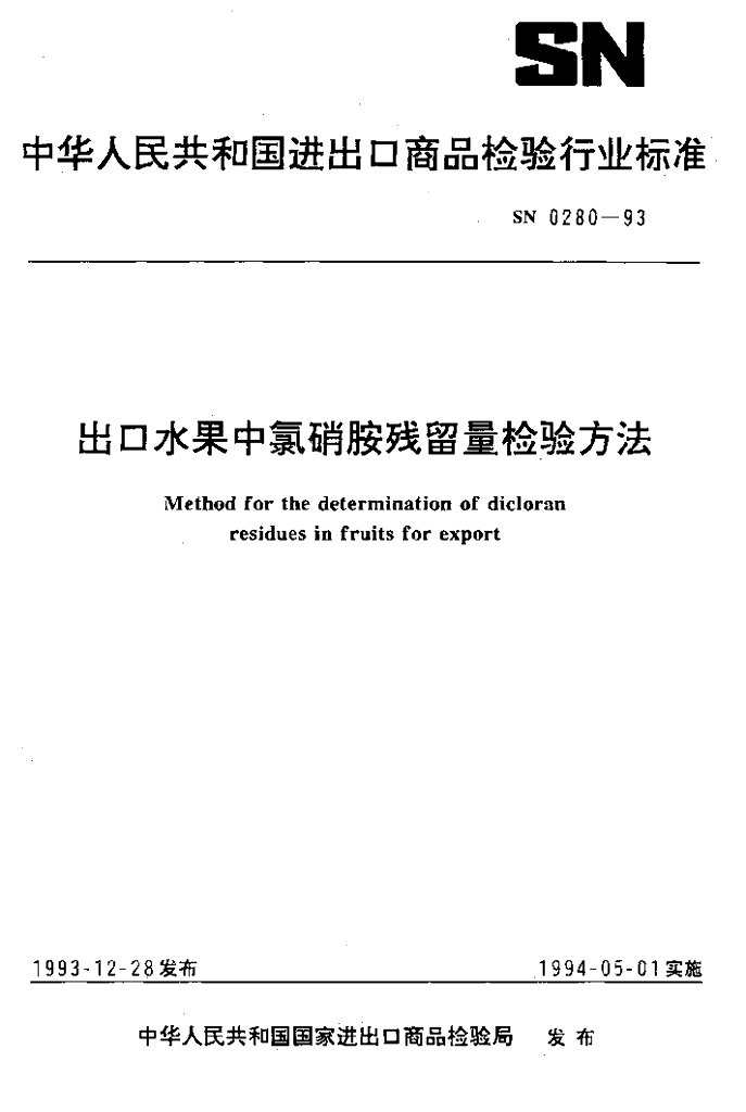 SN 0280-1993 出口水果中氯硝胺残留量检验方法