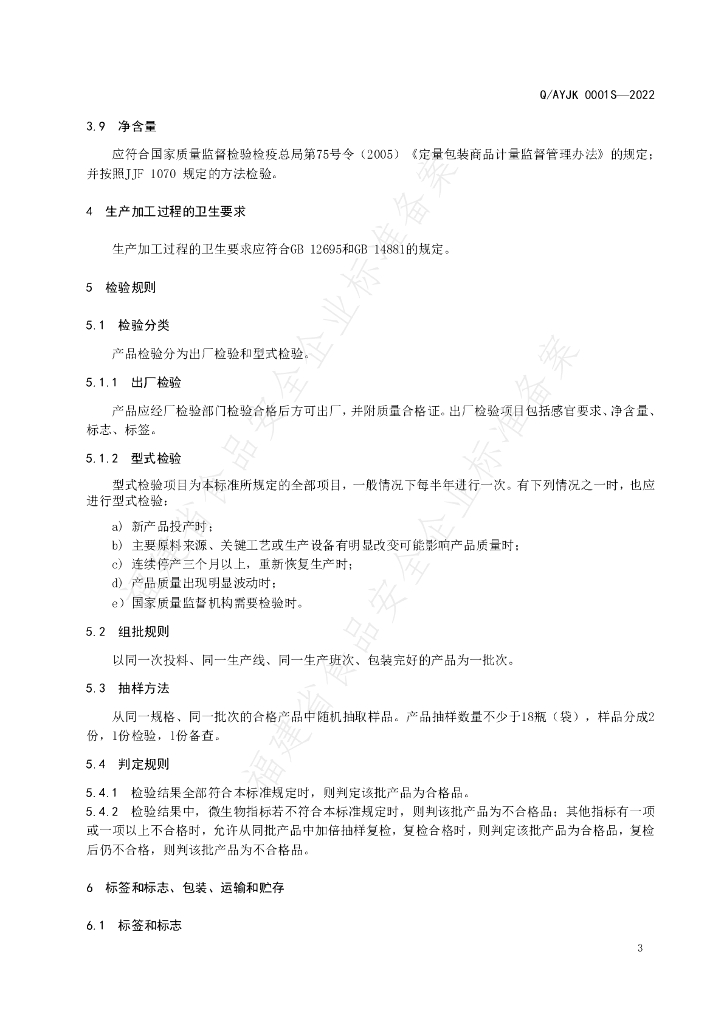 Q/AYJK 0001S-2022 复合酵素原液饮料
