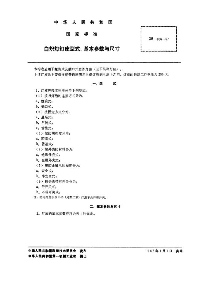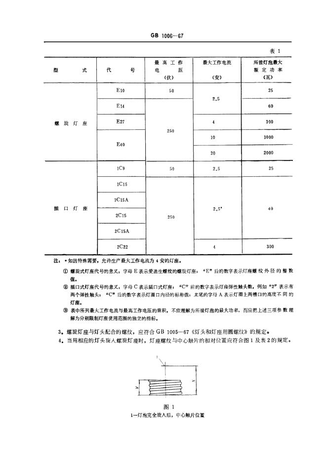 GB/T 1006-1967 白炽灯灯座型式、基本参数与尺寸