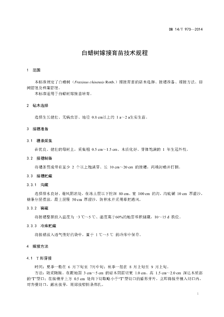 DB14/T 970-2014 白蜡树嫁接育苗技术规程